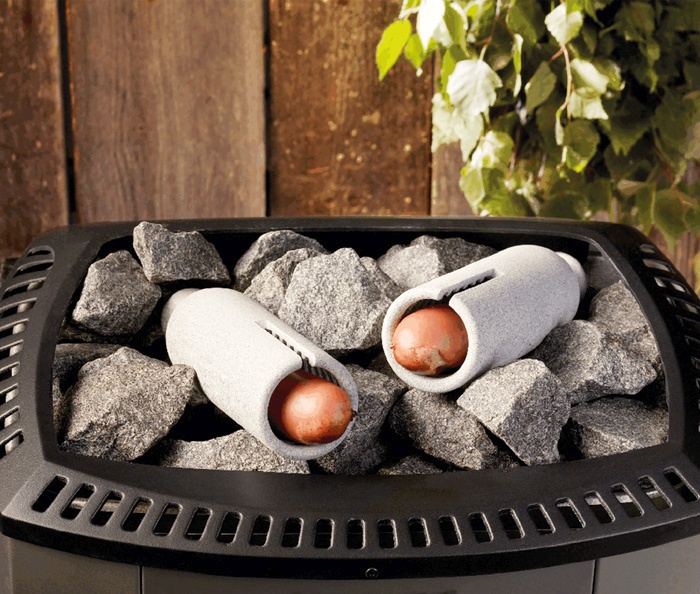 Star finski pregovor pravi, da je savna siromakova lekarna. Na Finskem, kjer je savna neločljivi del kulture, ima 5,5 milijona prebivalcev kar 3,3 milijona savn, to v povprečju pomeni eno na gospodinjstvo. Imajo jih tudi v tovarnah, pisarnah, na ladjah in v rudnikih, skupno savno imajo celo poslanci v finskem parlamentu. Povprečna Finka ali Finec gresta v savno vsaj enkrat na teden in v njej preživita nekaj ur. Med savnanjem se praviloma ne je, a ko se po prečiščenju oglasi lakota, je dobro biti pripravljen. Peč na vroče kamne, ki skrbi za temperaturo savne, je odlična za pripravo tradicionalne finske klobasice, imenovane makkara. Nekateri jo spečejo kar na kamnih, tisti, ki nimajo radi cvrčanja, pa lahko uporabijo poseben valjasti pekač za klobasico, imenovan makkaraputki, ki jih iz kamnine salovec izdelujejo v mestu Tuupovaara na vzhodu Finske. Ko je klobasica po petnajstih ali dvajsetih minutah ravno prav pečena, da je njena skorjica hrustljava, notranjost pa sočna, kamniti pekač s peči odstranijo s pomočjo posebnih rokavic, saj je zelo vroč, nato pa klobaso iz njega izvlečejo z vilicami. Hyvää ruokahalua, dober tek!