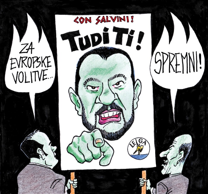 Ampak vse to je znano. Ni prvič in gotovo ne zadnjič, da italijanski (post)fašizem kaže na druge, preusmerja pozornost. Ne odreče se niti ozemeljskim pretenzijam. Zanimivejši in šokantnejši je odziv slovenske politične javnosti. Vlada in celo Pahor sta se tokrat odzvala primerno, na desnici pa so ponavljali vajo iz leta ’41. Peterle je videl predvsem priložnost, da med vzroki in posledicami postavi enačaj, ekvivalenco, ekvidistanco. Fašizem in nacizem ga zanimata zgolj toliko, kolikor mu odpirata prostor, da obsodi tisto, kar je zanj zares in edino problem – komunizem in partizanstvo. A še korak dlje so šli Janša, Grims in medijski pogon njune stranke. Sedaj niti več ne skrivajo, da so del iste zgodbe. Del retorike in dejavnosti novega evropskega fašizma. Ni kaj. Salvini je za slovensko desnico kot naročen, kot znamenje z neba. Priimek Salvini menda etimološko korenini v besedni zvezi »Salvi in Dio«. (Od)rešeni v bogu. Bo kar držalo.