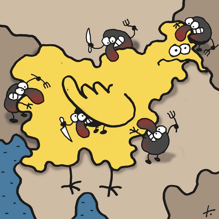 Čas ne dela v korist majhnih držav na prepišnih ozemljih. Kaj naj v takem položaju počne Slovenija? Predvsem se mora zavedati vloge Unije. Ta je v marsičem invalidna, a ostaja nepogrešljiv ščit pred črnimi scenariji znova razbite Evrope. Če se bo še rahljala, bo potreben trud za članstvo v njeni jedrni, verjetno »nemški« skupini. A pot vanjo ne vodi prek servilnosti (ravnokar izpričane v zvezi z Venezuelo), ampak prek lastne vitalnosti in pridobivanja zaveznikov – tudi v Avstriji, Italiji in Madžarski. Po incidentu z Italijo pa je tudi bolj jasno, da je lahko naš edini trdni zaveznik v soseščini le Hrvaška. Konflikti z njo, z nerešenim mejnim vprašanjem vred, so prav neznatni v primerjavi z grožnjo, skupno za obe državi. Tudi Hrvaška je potencialna tarča sosedskih ozemeljskih skomin. Hočeš nočeš bo treba okrepiti tudi klasično vojaško obrambo, vendar ne v korist Nata, ki nam v sporih s sosedi pač ne bo v pomoč, ampak obrambo domačega terena.