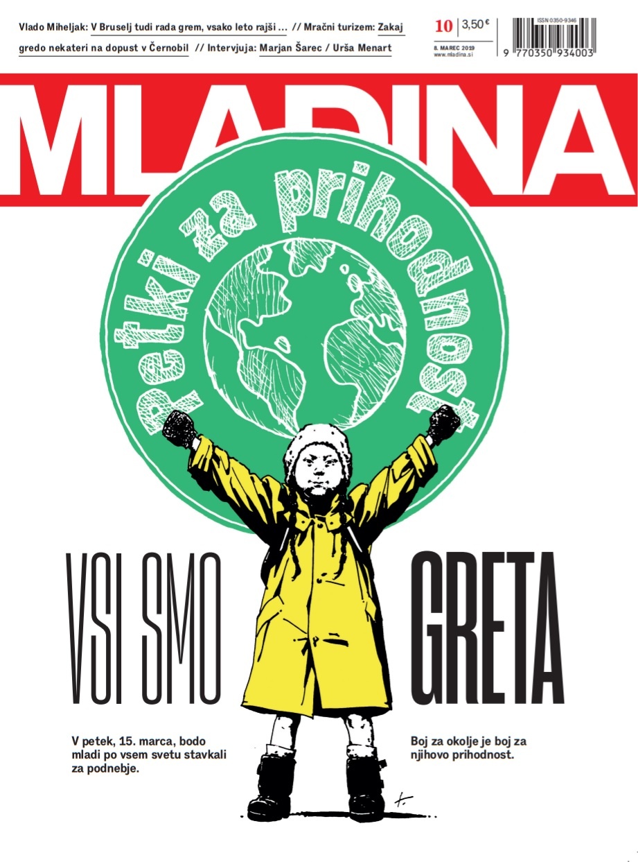 Jutri izide nova Mladina! V petek, 15. marca, pa bodo mladi po vsem svetu stavkali za podnebje. Boj za okolje je boj za njihovo prihodnost. Vabljeni k branju! Avtorja naslovnice sta Tomaž Lavrič (ilustracija) in Damjan Ilić (oblikovanje). #Mladina10