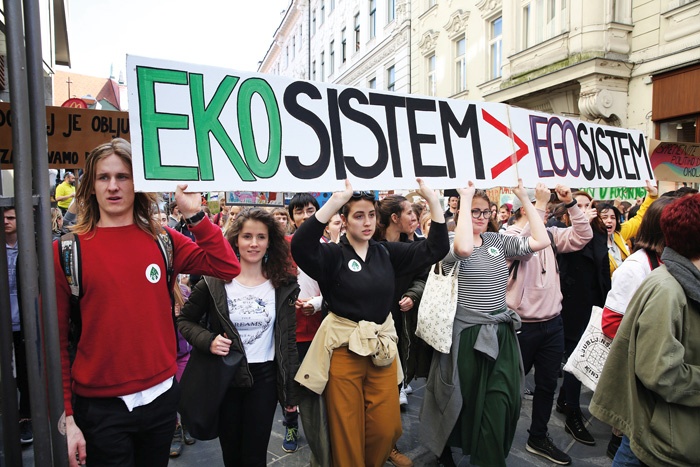 »Ekosistem > egosistem!«, »Denarja ne moremo jesti«, »Profit si vtaknite v rit!«, »Zanikanje ni politika!«, »Odrasli, odrastite!«, »Tudi za vaše otroke gre!« To so sporočila s transparentov protestnikov, ki so se prejšnji petek pet minut pred poldnevom zbrali v Ljubljani.
