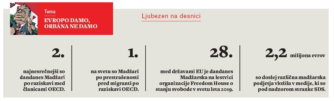 Za mnoge je seveda očitno, da je madžarski premier Orbán skrajni desničar, avtoritarni politik s totalitarnimi aspiracijami, nevarnost, ki grozi evropski celini od znotraj, a tudi priljubljen politik, ki ga častijo mnoge sestrske politične stranke na Poljskem, Slovaškem, Češkem, na Hrvaškem, v Makedoniji in tudi v Sloveniji. Ni težko videti, zakaj je Orbán tako priljubljen. Nagovarja namreč »drugorazredne«, če si izposodimo najnovejšo skovanko Janeza Janše, in daje vtis, da je voditelj zapostavljenih Srednje- in Vzhodnoevropejcev. Orbán danes pravi, da se bori proti privilegirani eliti, celo proti multinacionalkam, proti lažni filantropiji milijarderjev, svari pred »demokratičnim elitizmom« stare Evrope … Je premeten politik: Orbánov trik je, da po Budimpešti ne koraka s kljukastimi križi ali simboli Velike Madžarske in da v gozdovih ne ustanavlja paravojaških enot. Daje vtis zmernega voditelja. Ki pa kljub temu vodi politiko, ki koristi zgolj peščici.