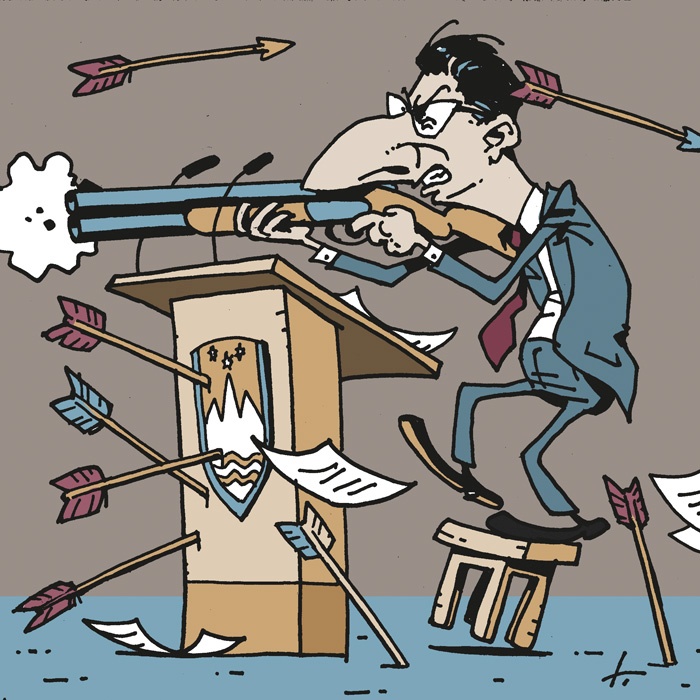 Namesto da bi pojasnil svoja dejanja oz. nedejanja, je kritikom jemal pravico, da s spraševanjem osvetljujejo njegovo delo. Ko mu je vprašanje zastavil poslanec Miha Kordiš iz Levice, ga je nonšalantno zavrnil, da mu bo odgovoril pismeno, ker da je provokator z zapisi na tvitu. Predsednik vlade je nonšalantno pohodil osnovni ritual, kot je njegova mesečna dolžnost, da se v parlamentu sooči z vprašanji iz poslanskih klopi in nanje odgovori. In dogodek spremenil v moralno prevzgojo svojih kritikov.