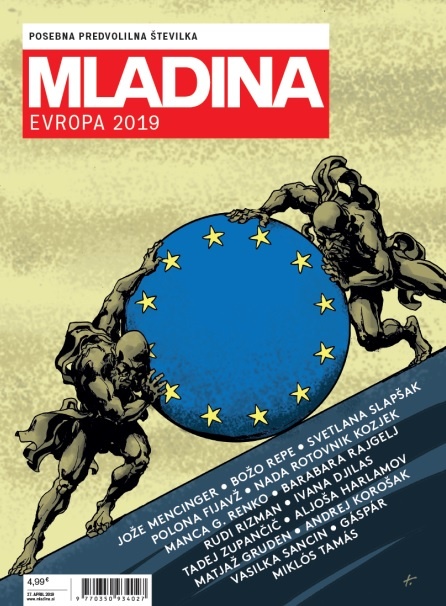 Danes je izšla tudi posebna predvolilna številka Mladine: Evropa 2019. Avtor naslovnice je Tomaž Lavrič, besedila in razmišljanja pa so prispevali ekonomist Jože Mencinger, zgodovinar Božo Repe, antropologinja Svetlana Slapšak, novinarka Polona Fijavž, anesteziologinja Nada Rotovnik Kozjek, zgodovinarka in pisateljica Manca G. Renko, pravnica Barbara Rajgelj, sociolog Rudi Rizman, režiserka Ivana Djilas, publicist Tadej Zupančič, literarni urednik Aljoša Harlamov, pravnica Vasilka Sancin, pravnik Matjaž Gruden, filozof G.M. Tamás, psiholog Andrej Korošak in zgodovinar Ian Kershaw. Že na voljo na vseh prodajnih mestih in tudi v naši spletni trgovini, priskrbite si svoj izvod!