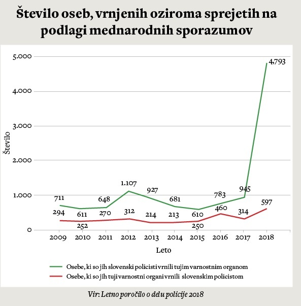 Da je policija sredi lanskega leta – tedaj je nova navodila za ravnanje z begunci dal prejšnji generalni direktor policije Simon Velički – spremenila ravnanje na meji, potrjujejo podatki. Skoraj nepredstavljivi so podatki policijske postaje Črnomelj. V mesecu pred izdajo navodil je za azil zaprosilo 98 odstotkov »ilegalnih pribežnikov«, mesec kasneje pa le še trije odstotki. Da se je nekaj spremenilo, kažejo tudi podatki o številu »ilegalnih pribežnikov«, ki jih je Slovenija po hitrem postopku vrnila sosednji Hrvaški, češ da niso zaprosili za azil. Leta 2017 so jih na Hrvaško vrnili 39 odstotkov (767 od 1934), lani pa že kar 51 odstotkov (4653 od 9149).