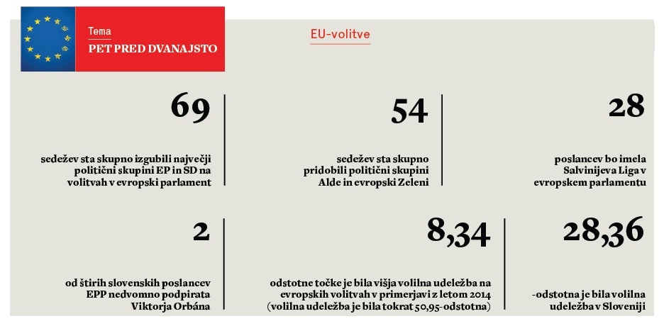 Enako lahko zapišemo za Madžarsko. Zmaga nacionalističnega avtokrata Victorja Orbána je bila prepričljiva, njegov Fidesz je na volitvah zbral 51,5 odstotka glasov, v evropskem parlamentu ima 12 od 21 madžarskih poslancev. A znova, to je manj kot na prejšnjih evropskih volitvah. Hkrati pa politična skupina, tista, na katero stavi Steve Bannon, skupina evropskih narodov, dejansko ni bila tako uspešna. Orbánova zaveznika na evropski ravni – njegov Fidesz je še član evropske ljudske stranke – sta le Matteo Salvini in Marine Le Pen, še Janez Janša s svojo SDS bo verjetno raje ostal v taboru ljudske stranke, čeprav so njegova stališča identična Orbánovim.