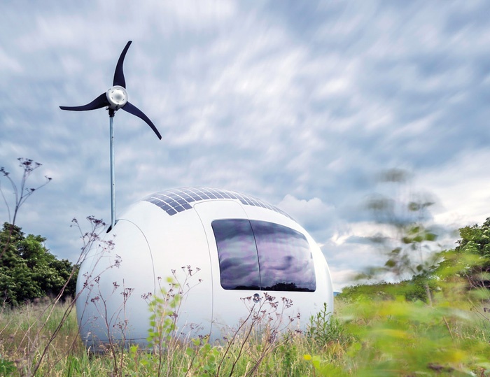 Minimalistično bivališče, imenovano ekokapsula, izvorno ecocapsule, ki ga je zasnovalo slovaško zagonsko podjetje, je odslej prek platforme airbnb v Bratislavi na voljo vsem, ki bi želeli preizkusiti samooskrbno življenje na desetih kvadratnih metrih. Prvih petdeset kupcev bo za prvo generacijo ekokapsul plačalo po 79.900 evrov, ko bo stekla množična proizvodnja, bo treba zanjo odšteti manj. Jajčasti domek je dovolj velik za eno do dve osebi; poltretji meter visoka kapsula je dolga štiri metre in pol, široka pa 220 centimetrov. Ni je treba priključiti na vodovod ali električno napeljavo, saj zbira in filtrira deževnico ali katerokoli drugo vodo, ki je na voljo, elektriko pa ustvarja s pomočjo vetrnice in solarnih panelov. Njena notranjost spominja na počitniško prikolico; kuhinja je opremljena z indukcijsko kuhalno ploščo, mini hladilnikom in pomivalnim koritom, bivalni prostor s široko posteljo in mizo, kopalnica pa z umivalnikom, katerega pipa se spremeni tudi v prho, ter straniščem, ki izločke kompostira. Kompaktni dom futurističnega videza lahko naložimo na prikolico, podobno kot čoln, in ga z avtom odpeljemo ter prestavimo kamorkoli.