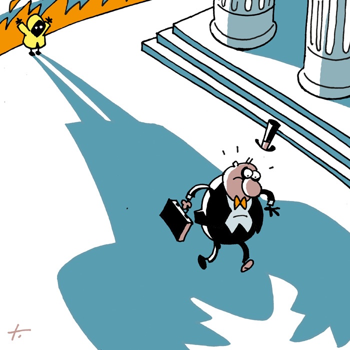 Zakaj bi bilo strah samo večino? Zakaj ne bi prenesli strahu tudi na manjšino, ki nas obvladuje, farba in strahuje, čeprav smo neizmerno močnejši – če bi se znebili frustracij, lažnih pripadnosti, razčistili nekaj zmede v glavah in si dovolili postati bolj jezni. Politika je del elite – ključen, a manj privilegiran, ranljivejši in občutljivejši za pritiske in zato prva tarča pritiska. Toda kritiko, jezo, nezadovoljstvo je treba izrecno usmeriti tudi proti trdemu, zakrinkanemu jedru odločanja – korporacijam, bankam, lobijem in njihovim pomožnim, deloma tudi medijskim četam. Čisto neobčutljivo tudi to jedro ni več. O tem priča na primer pismo skupine ameriških milijarderjev s pozivom: Obdavčite nas! Poziv govori, da se avtorji zavedajo nevarnosti. Slovenski bogataši zaradi davkov samo javkajo.