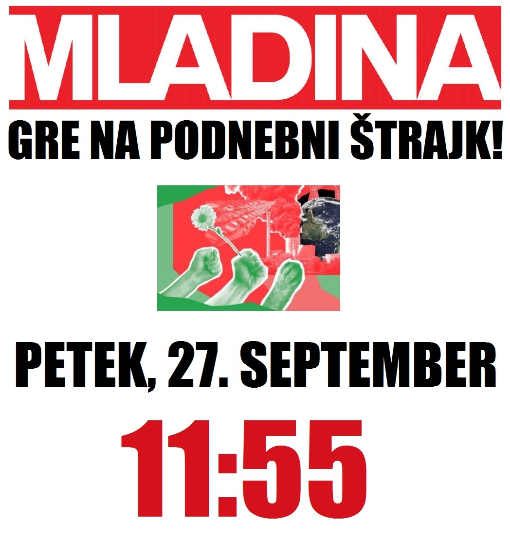 Mladina v podporo globalnemu podnebnemu štrajku v petek, 27. septembra, od 11.55 do 14.00 zapira vrata uredništva in se z ekipo novinarjev, urednikov in drugih sodelavcev pridružuje skupnemu boju za podnebno pravičnost na Trgu republike. Pridružite se nam in delite naprej!