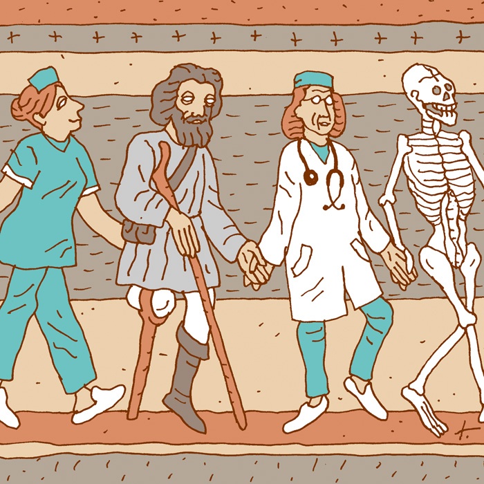 Bolnišnice so marsikaj, tu se postavljajo slabe in dobre diagnoze, tu se joče in stoka, tu se trpi, a kdaj tudi smeji. So točke skoncentriranih bolečin in trpljenja, a tudi točke upanja in odrešitve. Nekakšne vice so – nekateri pridejo sem umret, drugi, neprimerno več jih je, odhajajo iz njih živet, tako ali drugače popravljeni.