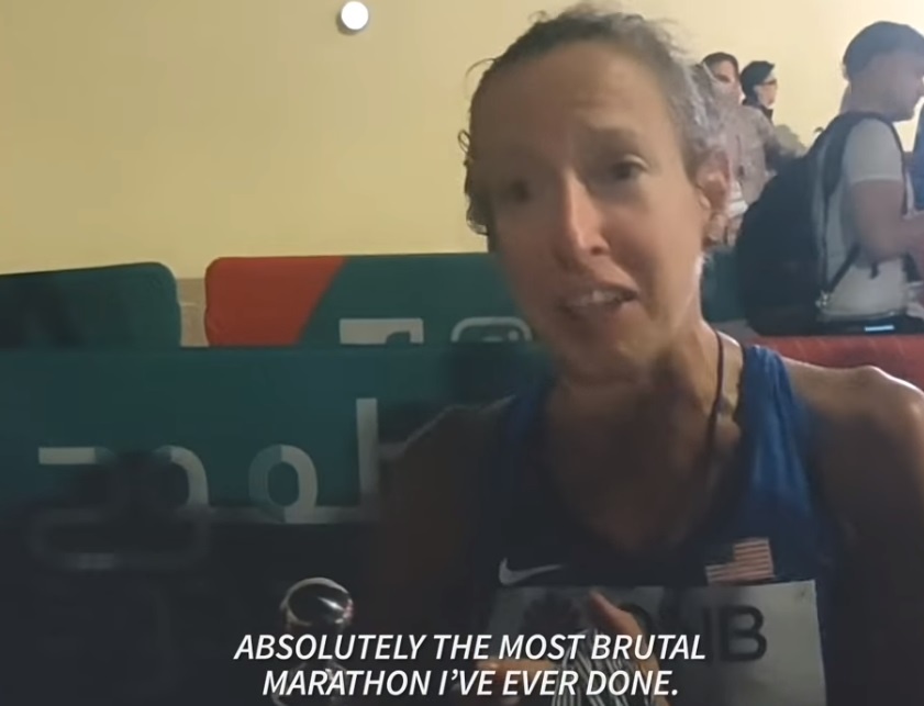 Mednarodna atletska zveza je svetovno prvenstvo, ki se načeloma odvija v drugi polovici avgusta, zaradi neugodnega podnebja v Katarju, prestavila na poznejši termin, torej na konec septembra. Kljub temu pa so bile razmere za atlete izjemno naporne, celo škodljive. Na žanskem maratonu, ki se je pričel ob polnoči! je termometer nameril 32,7 stopinje celzija ter 73,3 odstotno vlago. Izjemno zahtevne vremenske razmere so močno vplivale na končni razplet, saj je kar 30 atletinj od 68 nastopajočih potrebovalo zdravniško pomoč in oskrbo. Tudi čas zmagovalke je bil najpočasnejši do sedaj.