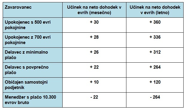 Učinek predloga Levice na zavarovance so ponazorili v spodnji tabeli: