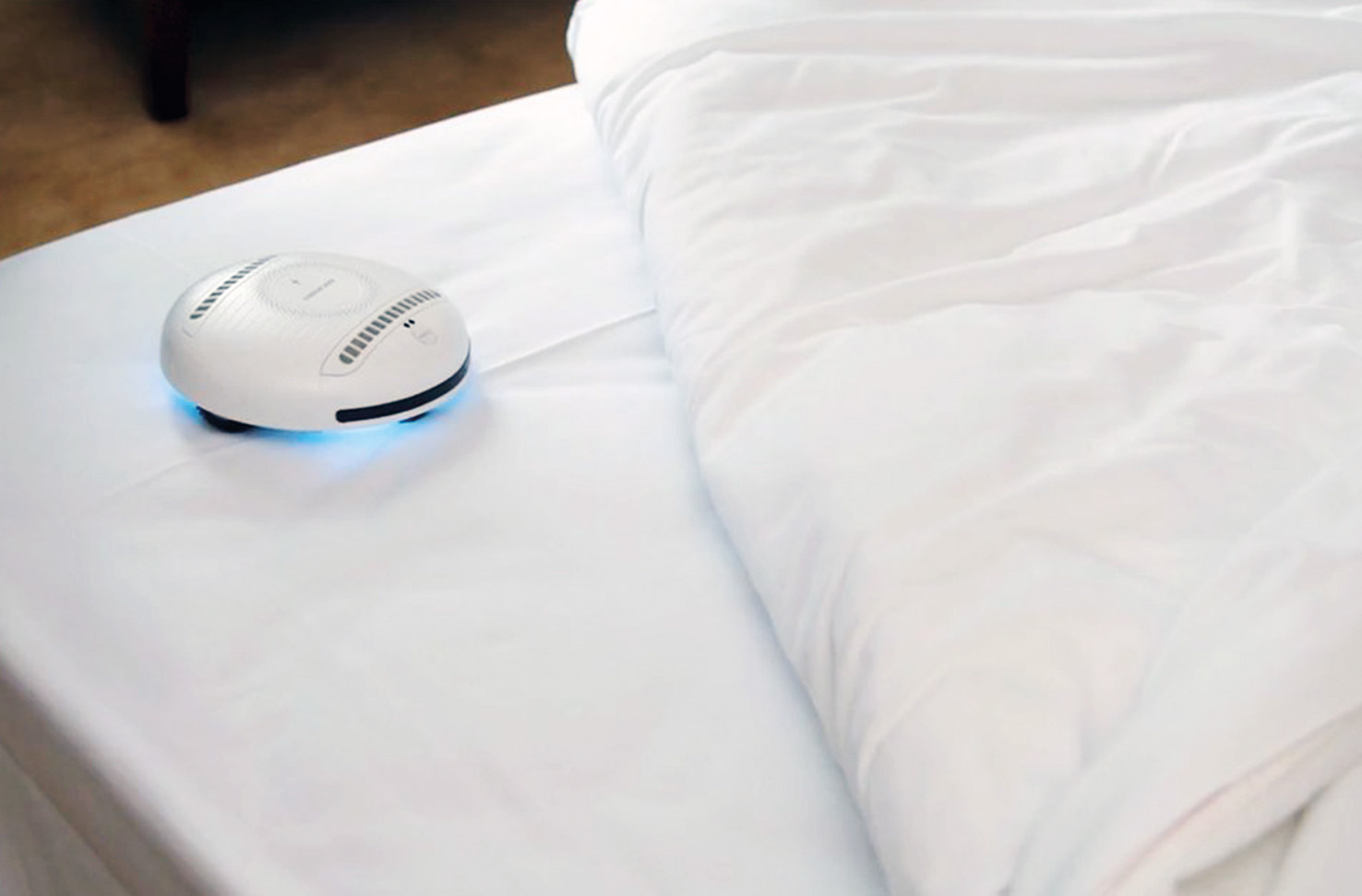 V postelji nikoli nismo sami, delimo si jo s pršicami, različnimi bakterijami, včasih tudi virusi. Zato bi bilo koristno med svoje rjuhe spustiti robota, imenovanega rockubot, da očisti umazanijo, ki je s prostim očesom ne vidimo. Terminator mikroorganizmov s pomočjo UV-luči in nadzvočnih valov sterilizira površino, po kateri se pelje, ter tako odstranjuje pršice in bakterije. Po vklopu deluje samodejno, ker vsebuje 24 senzorjev, pa ne more pasti čez rob ali nasesti. Posteljo očisti tudi, če ga pokrijemo z odejo ali pregrinjalom. Seveda ne dezinficira le ležišča, temveč vse oblazinjeno ali neoblazinjeno pohištvo, ležišča hišnih ljubljenčkov ipd. S pomočjo pokrova za spodnji del ga lahko primemo v roko in z njim lastnoročno razkužimo telefon, tipkovnico, daljinske upravljalnike ter otroške igrače, tudi plišaste. Gre za obvezni pripomoček za vse, ki trpijo za mizofobijo. Ker je majhen, kompakten in lahek, ga lahko vzamejo celo na potovanje. Kadar počiva, je mogoče z njim polniti druge naprave, brezžično ali prek USB-priključka. To pa še ni vse! Pojoči robot lahko, medtem ko čisti, predvaja glasbo, saj po zaslugi tehnologije Bluetooth deluje tudi kot zvočnik.