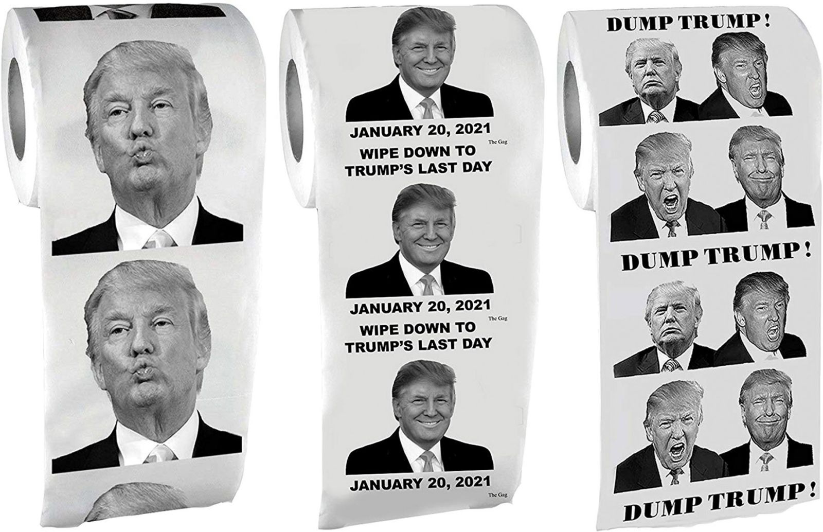 Petinštiridesetemu predsedniku ZDA Donaldu Trumpu, ki je trenutno v postopku parlamentarnega odpoklica oziroma impičmenta, se – če senat ne bo odločil drugače – predsedniški mandat izteče 20. januarja prihodnje leto. To je tudi datum, ki je napisan na toaletnem papirju s predsednikovim portretom, s katerim si lahko posamezniki, ki se ne strinjajo z njegovo despotsko vladavino in upajo, da na volitvah 3. novembra ne bo ponovno izvoljen, med vsakodnevnim brisanjem zadnjice nudijo vsaj nekaj zadoščenja. Druga različica toaletnega papirja pod štirimi različnimi predsednikovimi črno-belimi grimasami prinaša napis »Dump Trump!«, kar bi lahko prevedli kot »Dol s Trumpom!«, tretja različica pa vsebuje portretno fotografijo našobljenega Trumpa. Najslavnejši slovenski zet, katerega predsedovanje najvplivnejši svetovni velesili je sicer vse prej kot zabavno, bo tako poljubil marsikatero zadnjico in končal med iztrebki. Zavitke vece papirja z 250 potiskanimi dvoslojnimi lističi je mogoče kupiti posamezno ali v kompletih. Papir je izdelan na Kitajskem, uporabniki pa se pritožujejo le nad tem, da ni ravno najmehkejši.