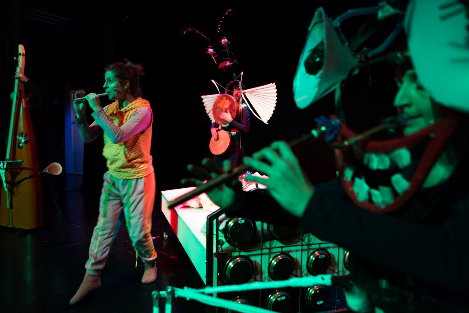 V Lutkovnem gledališču Maribor bo ob 18.00 premiera predstave Petra Kusa in Tery Žeželj Ponočnjaki, ki je nastala v koprodukciji z werk89 (Dunaj) in Zavodom Kuskus. Zvočnemu nasilju sodobnega sveta se ne moremo izogniti z umikom iz sveta zvokov in civilizacije temveč z iskanjem pravega zvena, svoje glasbe in smisla v kakofoniji sveta, ki nas obdaja. V takšni, vsem dobro znani situaciji se znajde tudi deklica Tonka, ko se zvečer odpravi spat. V strahu pred nevidnimi nočnimi zvoki, ki jih ne razpozna in jih ima za vlomilce, pokliče mamo in očeta. Poskušata ji dopovedati, da sliši čisto običajne zvoke. Pri vsakem si mora le predstavljati, kako je nastal, pa je ne bo več strah. Za vsakim nočnim zvokom tako prepozna drugačno zvočno prikazen. Naenkrat je njena soba polna nenavadnih zvočnih bitij, Ponočnjakov. Spoznava jih, muzicira z njimi in odkriva nove glasbene svetove.