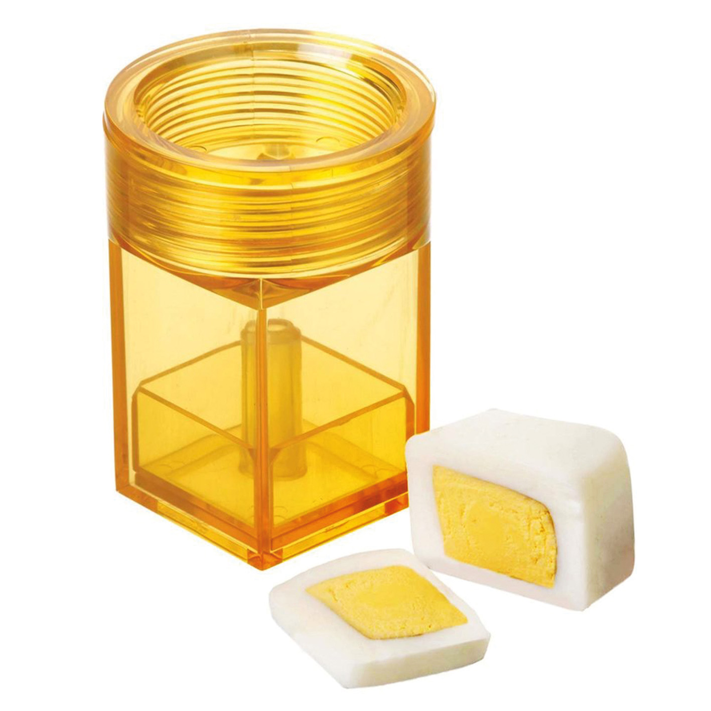 Pred poldrugim desetletjem so Japonci ustvarili kvadratne lubenice, ki so jih pridelali s pomočjo kalupov, v katerih so rasle. Lažje jih je transportirati kot zaobljene, v hladilniku zavzamejo manj prostora, ne kotalijo se po mizi in jih je enostavneje rezati. Med potrošniki se kljub naštetim prednostim očitno niso blazno prijele, sledile pa so jim tudi lubenice srčaste oblike in takšne, ki so oblikovane kot piramida, oboje namenjene predvsem temu, da pritegnejo pozornost kupcev. Očitno so tudi jajca v svoji naravni obliki preveč zaobljena, kar naj bi povzročalo nevšečnosti, ko se trdo kuhana kotalijo po krožnikih, z narezanimi na rezine pa sendvičev ne moremo obložiti čisto do roba. S posebnim plastičnim pripomočkom lahko kockasto jajce naredimo kar doma; olupljeno, še toplo trdo kuhano jajce damo v kalup in ga stisnemo s pokrovom, čez katerega privijemo zamašek. Jajce se preoblikuje v nekaj minutah, učinek pa je še boljši, če damo kalup z jajcem za nekaj časa v hladilnik. Pripomoček sta že v drugi polovici 70. let prejšnjega stoletja patentirala tako Japonec Masaši Nakagava kot Stan Pargman iz ZDA.