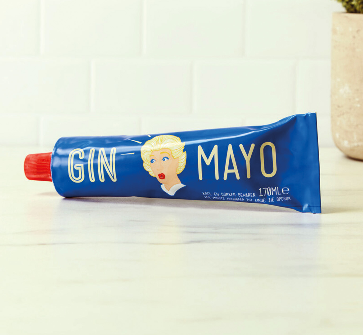 Lokal Mossel & Gin v Amsterdamu, kot že njegovo ime pove, ponuja morsko hrano – slovi predvsem po školjkah – in deset različnih vrst džina, med katerimi je eden celo brezalkoholni. V zadnjih mesecih lanskega leta sta lastnika Josh Selter in Wouter ten Velde po petih letih snovanja ter preizkušanja svojim gostom ponudila še majonezo z dodatkom džina. Nizozemci, tako kot Belgijci, namreč ob školjkah radi postrežejo ocvrt krompirček in k temu seveda majonezno omako. Alkoholizirana majoneza vsebuje dva volumska odstotka alkohola in zato ni primerna za mladoletne. Vsi, ki imajo radi tako majonezo kot džin, so nad novotarijo navdušeni. Da bo postala uspešnica med hipsterji, ni dvoma, saj sta izdelek in njegova embalaža z retro pridihom izjemno instagramabilna. Džin majoneza je na voljo v običajnih in mini tubah, ki jih lahko nosimo s sabo. Priporočajo, da jo po odprtju hranimo v hladilniku. Izdelujejo jo v sloviti tovarni majoneze na Nizozemskem, mogoče jo je naročiti prek različnih spletnih ponudnikov, če bi jo kdo želel prodajati tudi v Sloveniji, pa jo iz Amsterdama radi pošljejo novim distributerjem, a ne manj kot 48 tub.