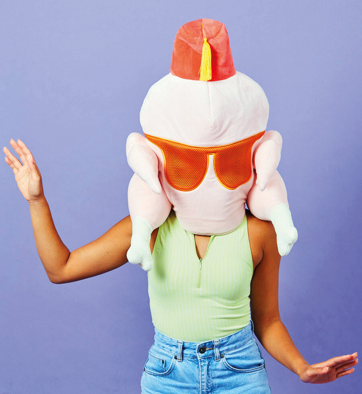 Oboževalke in oboževalci nanizanke Prijatelji se nemara spomnijo osmega dela pete sezone, ki sodi med najbolj ikonične v zgodovini serije in v katerem se prijatelji spominjajo najbolj grozljivih praznovanj zahvalnih dni v svojem življenju. Monika si v njem na koncu čez glavo natakne purana s sončnimi očali in fesom, da bi se opravičila Chandlerju in ga omehčala, ker mu je pred leti odrezala del palca na nogi. Chandler je nad masko tako navdušen, da Moniki nehote prvič izpove ljubezen, a to takoj zanika. Kakorkoli, dobri dve desetletji po tem, ko je bila omenjena epizoda prvič predvajana, se je našlo podjetje, ki je v naglavnem puranu zavohalo zaslužek. Po njegovi zaslugi si lahko zdaj namesto pravega perutninskega kadavra za dvigovanje morale med prijatelji ali za pustno preobrazbo omislite plišasto puranjo masko. Ta je na tržišče sicer prišla lani za noč čarovnic. Našita sončna očala so izdelana iz mrežaste tkanine in se uporabljajo kot odprtina za oči, čeprav so videti bolj kot puranov nedrček. Na vrhu je prišit fes, izvorno očitno aluzija na besedno igro med Turčijo in puranom, angleško oboje turkey.