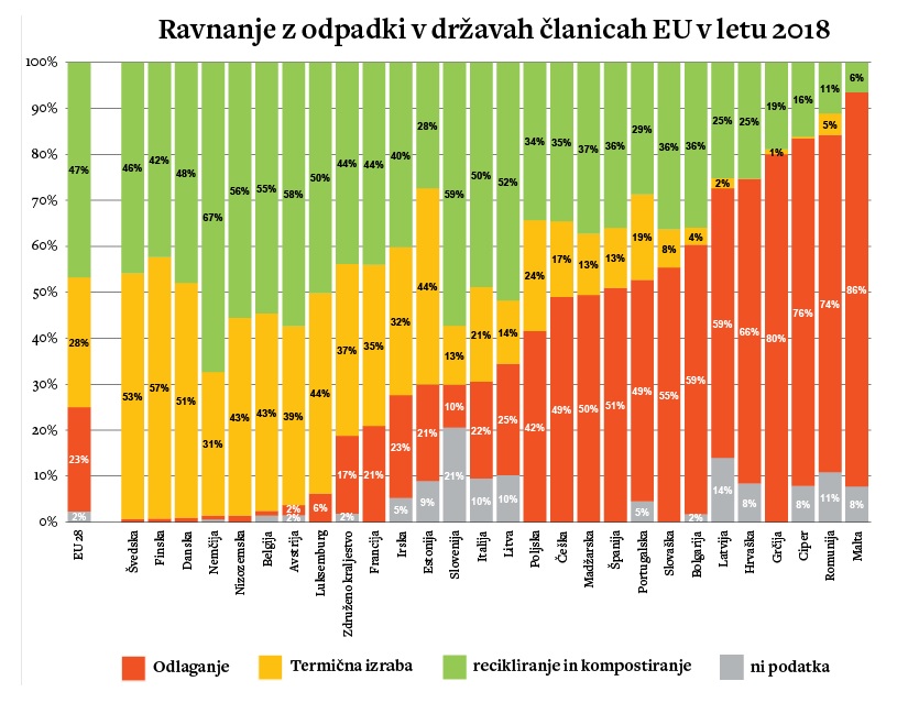 Slovenija je, kar se tiče ločenega zbiranja in nadaljnjega sortiranja odpadkov, zgodba o uspehu. Delež ločeno zbranih odpadkov je med višjimi v EU, prav tako smo med vodilnimi po deležu recikliranih odpadkov. A ta zgodba o uspehu ima napako – sami nismo sposobni poskrbeti za tiste ločeno zbrane in sortirane odpadke, ki jih ni mogoče ali pa ki se finančno ne splačajo reciklirati. Nimamo namreč zadostnih zmogljivosti za njihovo dokončno odstranitev. Ker jih v skladu z evropsko zakonodajo ne smemo več odlagati na odlagališčih, je edina rešitev odstranitev s pomočjo sežigalnic. Teh pa je v Sloveniji premalo, da bi zadostile potrebam.