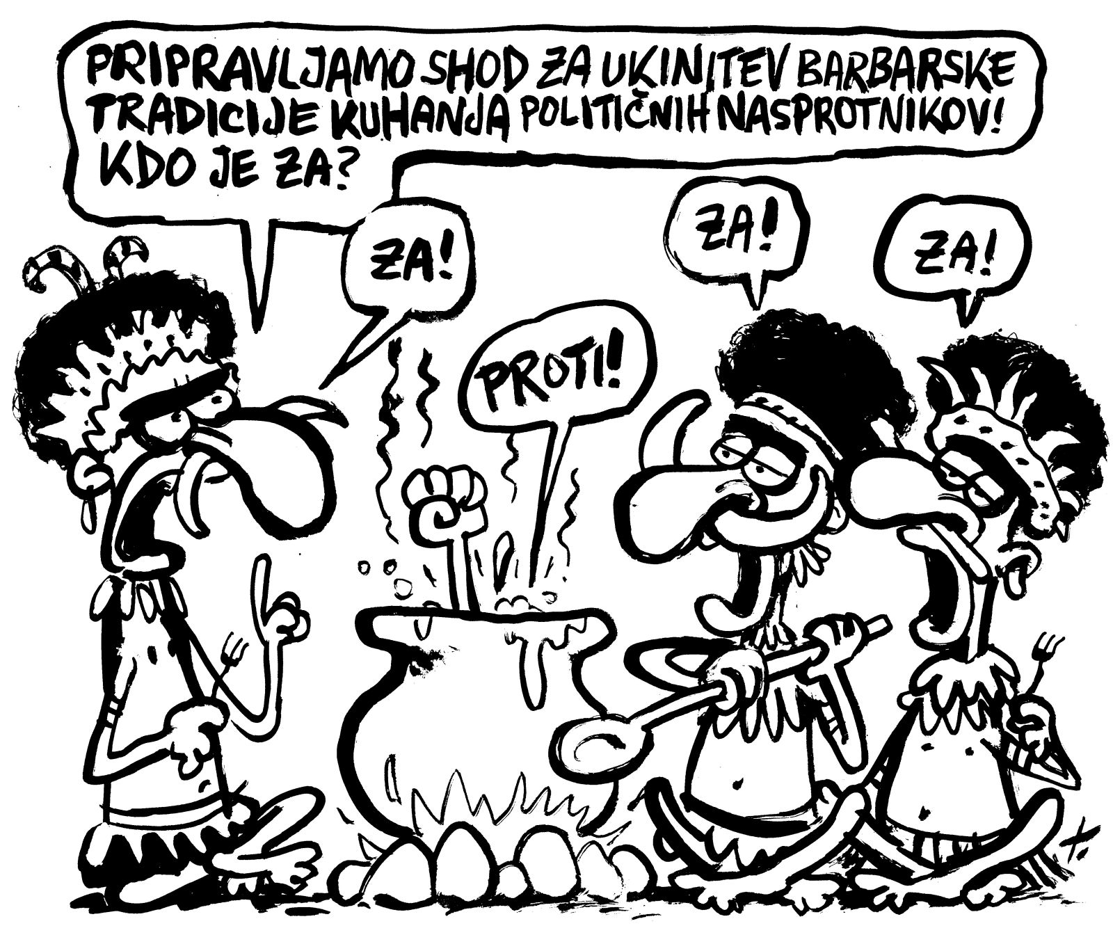 »Sedi klan ljudožercev ob ognju, pridno kuri pod kotlom in kuha nekaj nesrečnikov, hkrati pa vneto razpravlja o organizaciji shoda proti – ljudožerstvu.«