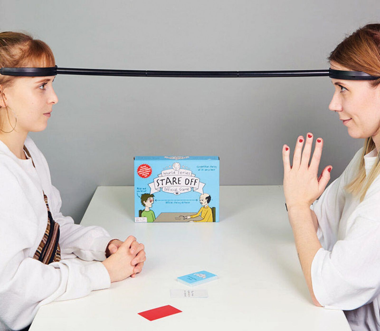 V povprečju naj bi človek z vekami utripnil približno petnajstkrat v minuti. Ker lahko mežikanje do neke mere nadzorujemo, je primerno tudi za postavljanje rekordov. Neuradni svetovni rekord v neutripanju z vekami naj bi znašal le sekundo manj kot 41 minut, ko sta se v strmenju pomerila Avstralca na dobrodelni prireditvi, v solo nemežikanju pa naj bil rekorder filipinski igralec in voditelj, ki ni niti trenil z očesom celo uro, 17 minut in tri sekunde. Igro strmenja se lahko gremo brez pripomočkov, obstaja pa tudi samooklicana uradna družabna igra, world series stare off official game, ki zadevo popelje na višjo raven. Igra zahteva najmanj tri igralce, ki morajo biti stari vsaj osem let; medtem ko si dva nepremično strmita v oči, je tretji sodnik. V kompletu sta plastična obroča, ki si ju igralca natakneta okoli čela, nato pa nanju pritrdita sestavljivi tridelni distančnik, ki njuni glavi ohranja na varni in ves čas enaki razdalji. Ko eden od igralcev pomežikne, mu sodnik pokaže rdeči karton. Komplet vsebuje tudi 23 kart z nalogami za motenje soigralčeve pozornosti, od prdenja z ustnicami, do oglašanja lačne mačke, vrtanja po nosu ipd.