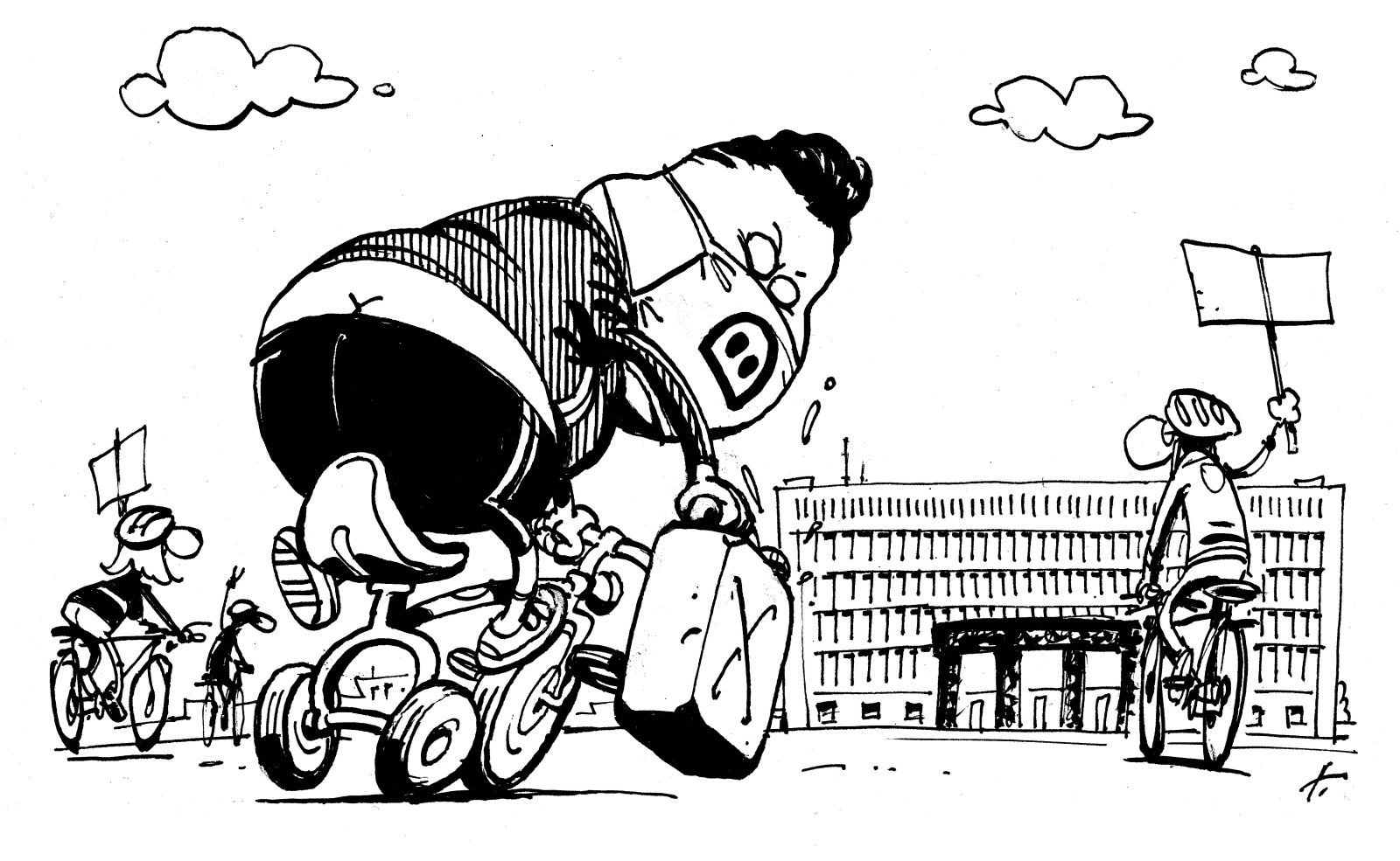 Potem ko je General Glanzkopf v parlamentu izjavil, da so se take stvari kot kolesarski protesti »dogajale v 30. letih v Berlinu«, je ljubljanska gasilska brigada skoraj razglasila alarm. (žana mahniča - pigija so opazili v bližini reichstaga z večjim kanistrom press)