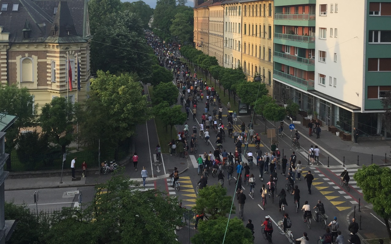 Tudi danes so ob 19. uri slovenske ulice zavzeli kolesarji in kolesarke. Na protivladnem protestu se jih je največ zbralo v Ljubljani, večinoma so protestirali na kolesih, nekateri pa tudi s skiroji, rolkami in peš. Protest je tudi ta teden potekal mirno in v skladu s pravili, policija je pridržala le eno osebo. Državljanke in državljani želijo s to gesto vladi Janeza Janše sporočiti, da imajo volivke in volivci nično toleranco do korupcije, grobih kadrovskih menjav in drugih političnih nastavljanj ljudi na vplivne državne funkcije ter da imajo dovolj pritiskov na svobodno poročanje medijev. V zadnjem času je namreč v javnosti ponovno odmeval žaljiv odnos do novinark in novinarjev, na katere se spravlja predvsem največja vladna stranka SDS.