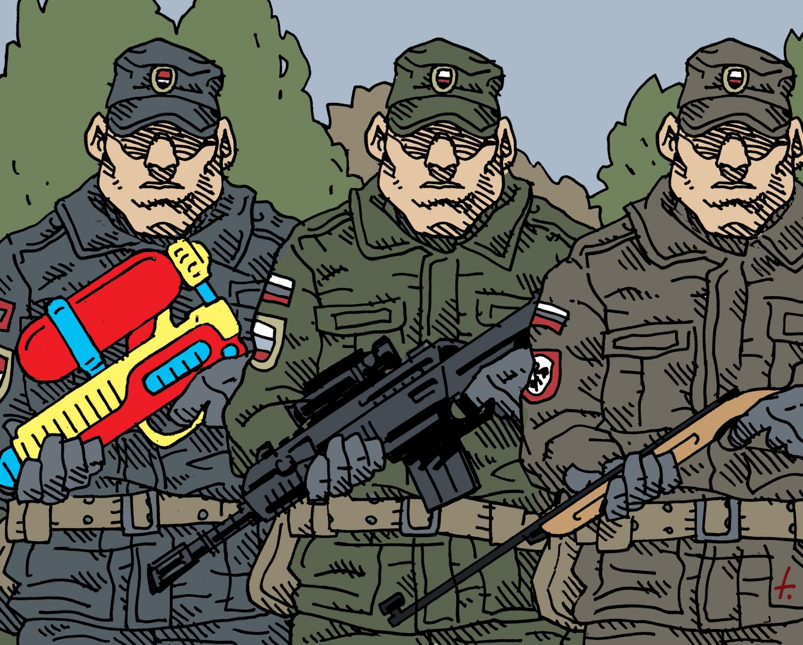 Če boste torej konec meseca kje ob Kolpi in boste naleteli na uniformirance, kako se boste odzvali? Lahko da bodo člani varde na svojem opazovalnem sprehodu. Lahko da bodo slovenski vojaki v vlogi »premične opazovalnice«. Prej ste uradne patrulje od neuradnih lahko ločili po navzočnosti policije, sedaj ne več. In drugič, boste uniformirance ubogali? Odgovorni seveda pravijo, da vlada mir in da ima monopol nad uporabo prisile v državi še vedno le policija, ampak ali boste v konkretni situaciji res tvegali misel, da so puške, ki jih nosijo uniformiranci, zgolj plastične? Kaj pa, če boste naleteli na vojaško patruljo, ki sicer ne sme samostojno voditi postopkov, vam pa reče, da počakajte na prihod policije – jih boste ubogali? Je res slovenščina po novem dokazilo o urejenem statusu? Kaj pa, če boste nekje v naravi, blizu meje, s svojimi prijatelji iz tujine? Jih ne bi bilo bolje posvariti, naj ne hodijo sami, ker imamo v Sloveniji očitno nerazglašene izredne razmere?