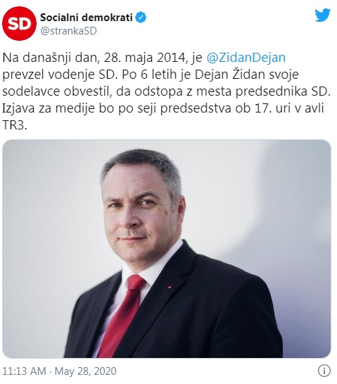 Dejan Židan po šestij letih odstopa z mesta predsednika SD. Novico je stranka SD objavila na Twitterju. Po neuradnih informacijah bo vodenje stranke začasno prevzela evropska poslanka in podpredsednica SD Tanja Fajon.