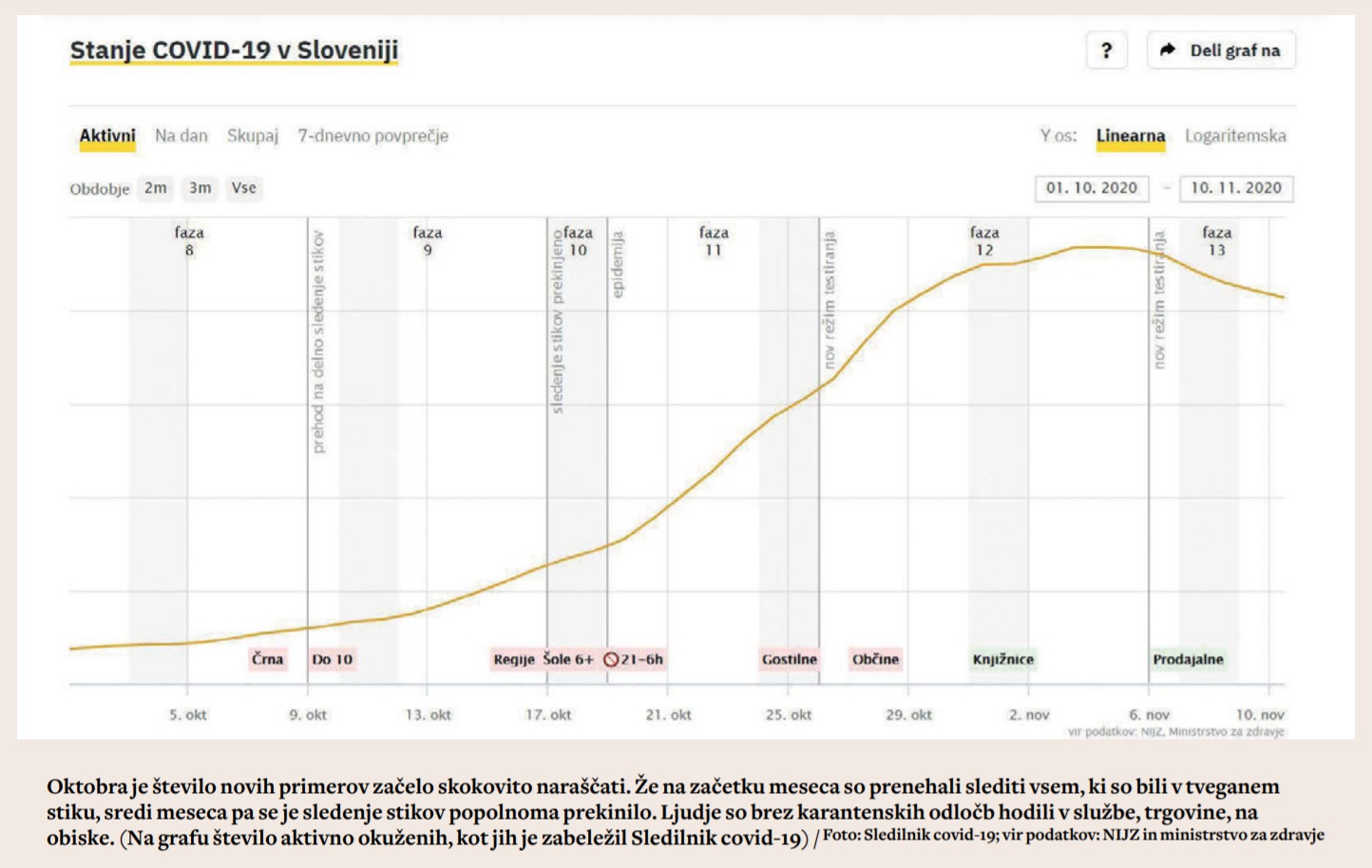 Z NIJZ so 8. oktobra uradno sporočili, da se bodo osredotočali samo še na ranljive skupine. Mario Fafangel, predstojnik Centra za nalezljive bolezni na NIJZ, je takrat ljudi pozval, da naj oboleli sami obvestijo tiste, s katerimi so bili v stiku, ti pa naj se ob znakih bolezni takoj izolirajo. Očitno se je jeseni »epidemiološka odeja, razprostrta nad Slovenijo«, strgala. Na NIJZ so imeli premalo ljudi, epidemiologi vsem stikom več niso mogli slediti.