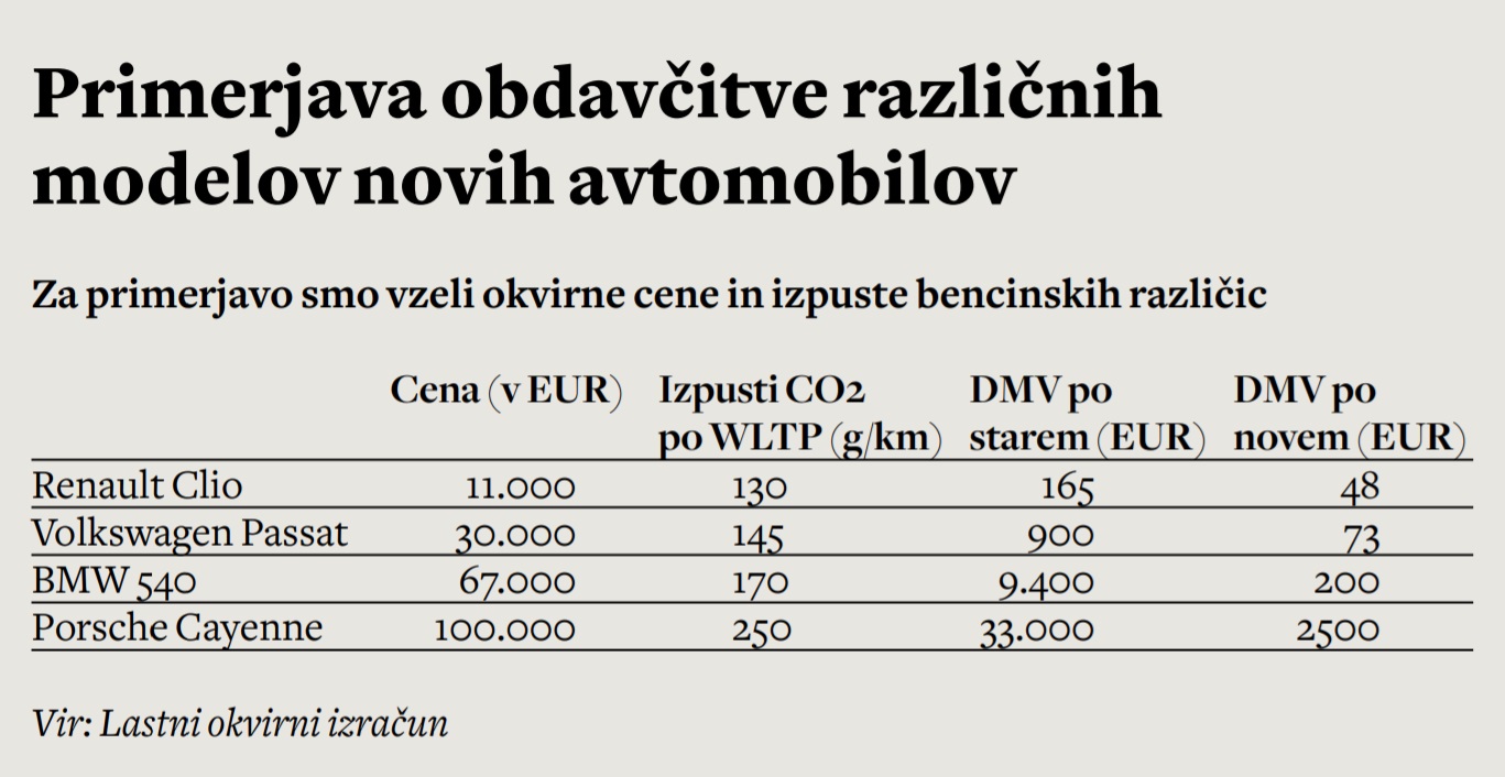 V ozadju te poteze je dejstvo, da z novim letom proizvajalci vozil ne bodo več smeli prodajati na podlagi lažnih podatkov o izpustih CO2, pridobljenih s starim načinom testiranja (NEDC), ki ni upošteval dejanskih voznih razmer. Dokončno bo v veljavo stopilo označevanje izpustov, izmerjenih z novim, realnejšim testnim ciklom, imenovanim WLTP. To pomeni, da pri novih vozilih proizvajalci ne bodo več mogli zavajati z navajanjem manjših izpustov od realnih. Kot piše v obrazložitvi zakona, bi se zato, če bi ohranili veljavno ureditev, z novim letom zelo zvišala obdavčitev novih motornih vozil, to pa bi povzročilo gospodarsko škodo. »Zvišanje davka bi privedlo do pretresa na trgu, negativno vplivalo na mobilnost prebivalstva in že zdaj neugodno starostno strukturo voznega parka v Sloveniji, kar bi še otežilo doseganje okoljskih ciljev Republike Slovenije v prometu.« Zvišanje obdavčitve bi »dodatno ogrozilo obstoj celotne panoge in s tem povzročilo težko popravljive posledice za delovanje države tako s socialnega kot tudi fiskalnega vidika«.