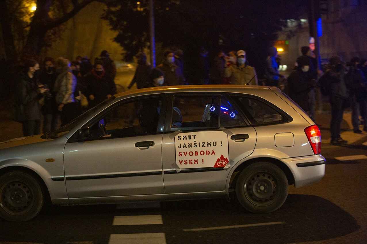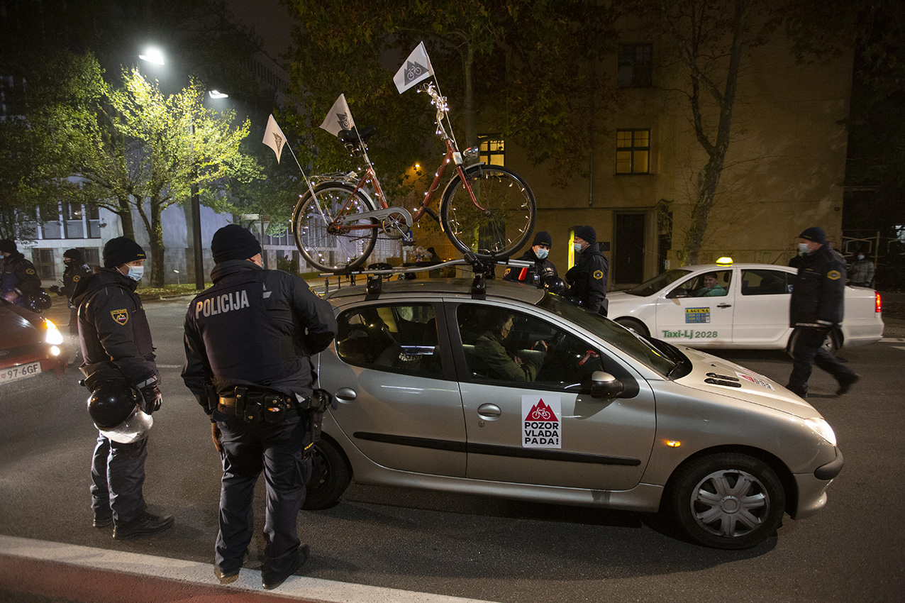 Potem ko so od pomladi ob petkih protestirali na kolesih in peš, so včeraj protestniki v Ljubljani akcijo izvedli v avtomobilih, iz katerih po njihovih prepričanjih ne more priti do prenosa okužb. Zvečer so sporočili, da je policija protestnikom, ki so se sami vozili v svojih avtomobilih, vseeno napovedala, da bodo dobili kazni za nedovoljeno zbiranje.