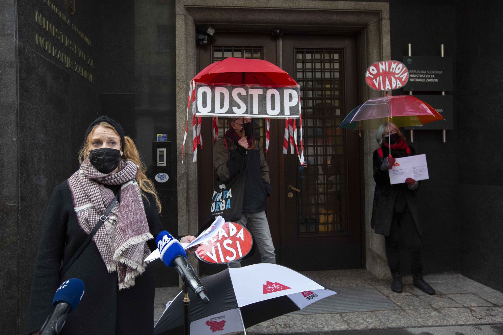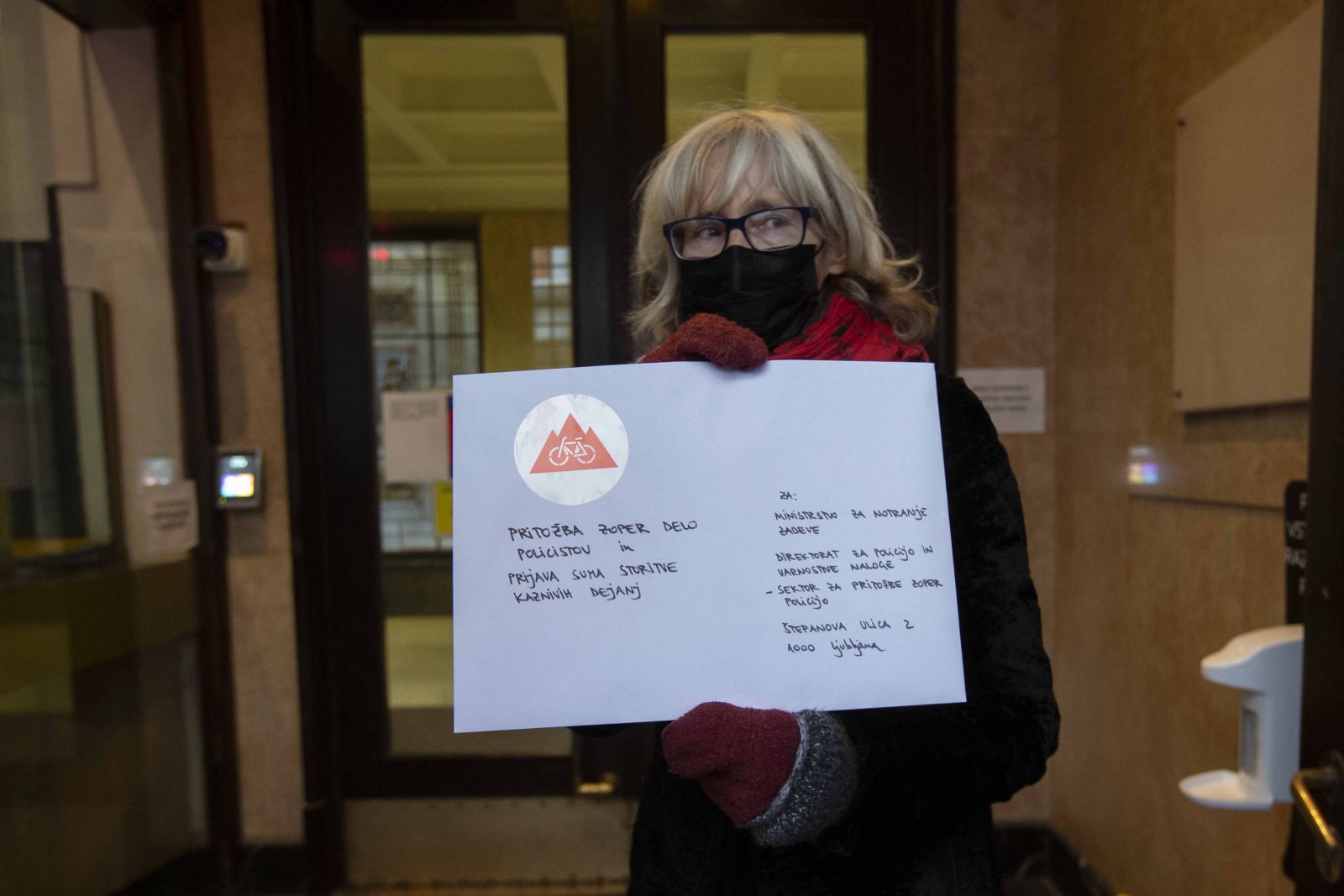 V preteklih tednih smo v Sloveniji priča stopnjevanju represije nad svobodo javnega izražanja do povsem absurdnih razsežnosti. Zato so protestnice in protestniki včeraj popoldne vložili pritožbo na Ministrstvo za notranje zadeve (Štefanova 2).