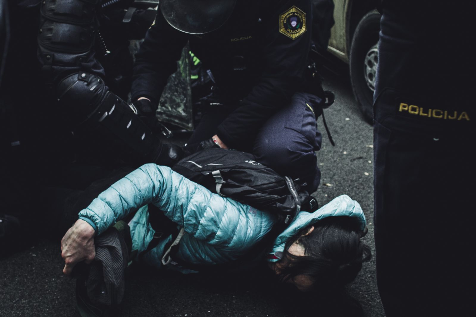 FOTO: Aretiranih vsaj 11 ljudi, policija uporabila silo in solzivec
