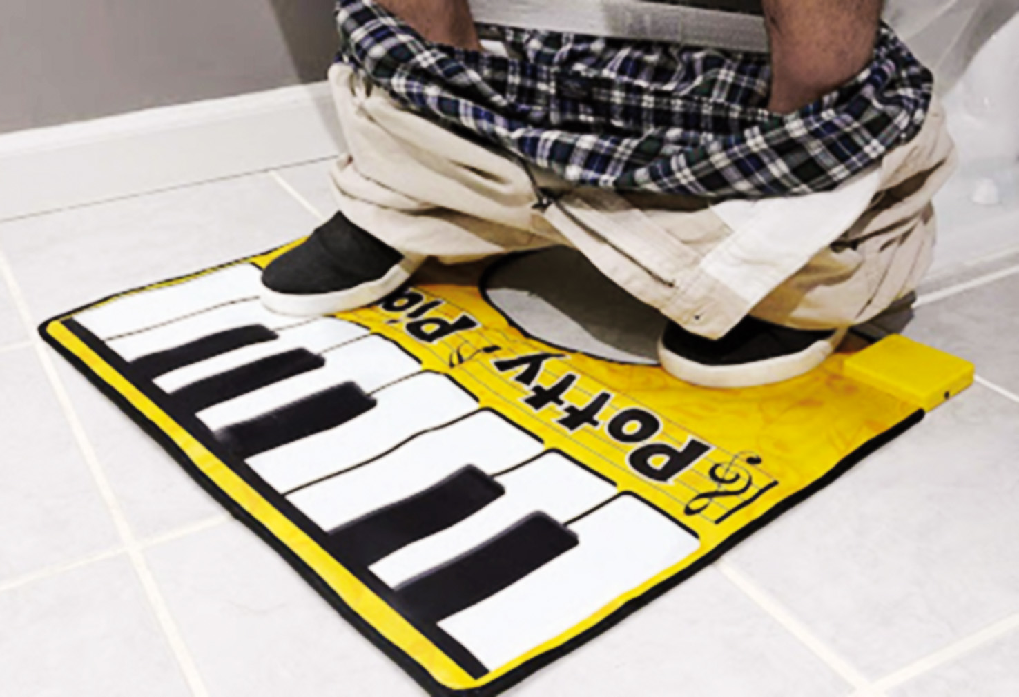 Opravilo iztrebljanja je očitno tako dolgočasno, da se v klozet le redkokdo odpravi brez čtiva, pametnega telefona ali kakega drugega vira zabave. Samo opravljanje velike potrebe naj bi v povprečju trajalo dvanajst minut, v družbi, ki prisega na večopravilnost, pa sedenje na stranišču velja skoraj za izgubo časa in je treba zraven početi še kaj, da se počutimo učinkoviti. Zakaj se torej med defekacijo ne bi kratkočasili z igranjem klavirja ali se, če smo popolnoma brez glasbene izobrazbe, tega celo naučili? Potrebujemo le klaviaturo, izvorno poimenovano potty piano, na katero igramo z nogami, kar zna biti s spuščenimi hlačami dodaten izziv. Klaviatura, katere razpon je ena oktava, je izdelana iz vinilne plastike, ki jo je lahko čistiti, ima gumb za vklop in za delovanje potrebuje baterije. Priložena sta tudi pesmarica ter znak ’ne moti’, ki ga lahko obesimo na kljuko vrat z zunanje strani. Če je straniščna školjka pri vas v kopalnici, pa WC-pianino zagotavlja dodatno zabavo, saj se prepevanju pod tušem lahko pridruži glasbena spremljava klavirja pred straniščno školjko.