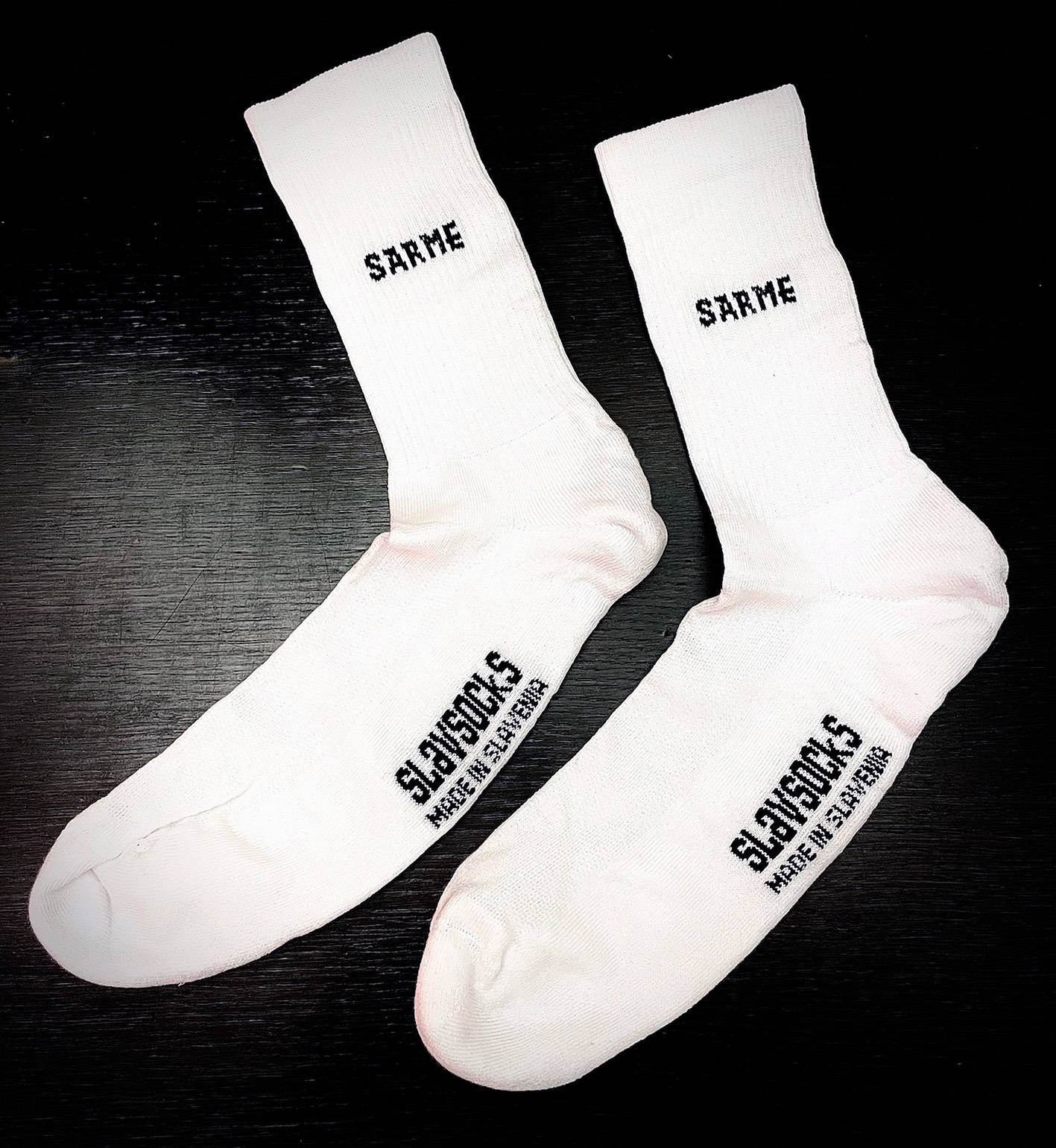 Bele bombažne nogavice, ostalina 80. let prejšnjega stoletja, ki jih zunaj športnih igrišč ali domačih dnevnih sob včasih verjetno še povohali ne bi, v zadnjih letih doživljajo svoj veliki povratek. Tokrat vstopajo skozi glavna vrata in izgubljajo pridih subverzivnosti; zvezdnice in zvezdniki jih nosijo v natikačih, sandalih, čevljih in salonarjih, potegnjene čez kavbojke ali najlonke. Privlačni naboj nošenja belih nogavic zdaj še potencira nova znamka slavsocks, z napisi, kot so ajvar, sarme, burek, rakija in #čevapi. Nogavice so izdelane iz ekološko pridelanega bombaža, v Slaveniji, ki je morda tudi v Sloveniji. »Slavenija je nova entiteta, nova imaginarna skupnost ljudi, ki jih druži slovanskost,« razlaga spletna stran, prek katere so za nadgradnjo na voljo tudi verižice za okoli gležnja, ki jih nosimo čez nogavice. Idejna avtorica slovanske linije belih nogavic je Tina Mentol, etnologinja in kulturna antropologinja, ki stoji tudi za nogavicami slocks z upodobljenimi motivi slovenske kulturne dediščine, kot so potica, kranjska klobasa in cviček.