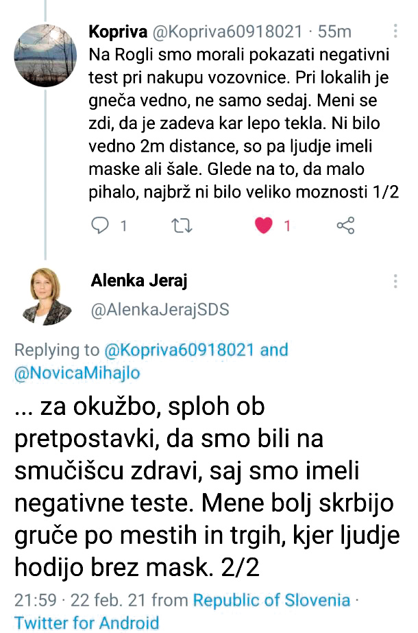 Jerajeva je poleg uradnega profila na Twitterju upravljala še profil Kopriva60918021, svoj skrivni alias, ki ga je uporabljala za anonimno objavljanje provladnih vsebin. Del nekega dokaj vsakdanjega tvita je napisala z anonimnega profila, nato pa ga je nehote dopolnila z osebnega profila in tako javnosti razkrila svoj drugi spletni obraz; to je za osebo na njenem položaju blago rečeno sporno. Ta spodrsljaj je potrdil ugotovitve novinarja Anžeta Voha Boštica, ki je za portal Pod črto razkrival organizirano mrežo lažnih profilov, naklonjenih stranki SDS, in pri tem opozoril, da so v zlorabo demokratičnosti družabnih omrežij vpleteni tudi nekateri najvišji predstavniki stranke. Kopriva ni osamljen primer: Andrej Čuš, nekdanji poslanec SDS in zdajšnji predsednik Zelenih Slovenije, je priznal, da je bil v astroturfing vpleten že pred desetletjem. Anže Voh Boštic je za Delo pojasnil, da je »primer Alenke Jeraj še en indic, da je stranka SDS oziroma da so njeni najvišji predstavniki neposredno vpleteni v astroturfing. Zanimivo pa je, da to niso nekakšni plačanci, ampak so v to vpleteni tudi poslanci, razen če kdo upravlja njihove profile.«