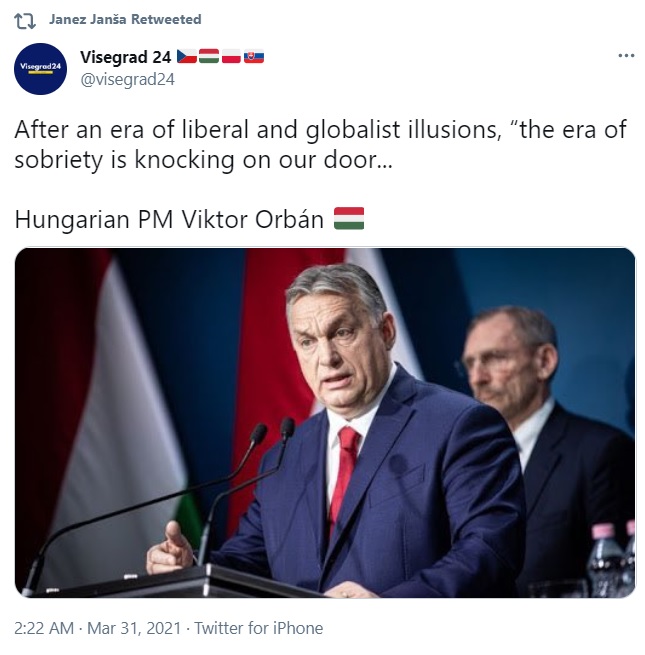 Predsednik vlade je znova retvital kanal Višegrad24, ki na socialnih omrežjih deli "neodvisne novice" iz politike, zgodovine in kulturne zgodovine držav, pripadnih višegrajski skupini.