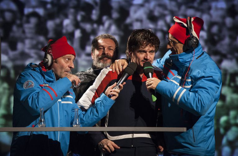 Igrajo: Primož Bezjak, Damjana Černe, Željko Hrs, Uroš Maček, Matej Recer in Katarina Stegnar. Glasba: Silence, scenografija: Tomaž Štrucl in Sandi Mikluž (Estrihi in ometi), kostumografija: Mateja Benedetti, koreografija: Branko Potočan, ilustracije: Meta Wraber, animacija: Gregor Balog, kompozitiranje, mapiranje in programiranje videoslike: Luka Dekleva, lektorica: Mateja Dermelj, oblikovanje svetlobe: David Cvelbar, oblikovanje zvoka: Silvo Zupančič, trening smučanja: Miha Lapanja, trening potapljanja: H2O Team, video: Dušan Ojdanič, avtor uvodnega videa: Dare Kragelj, oblikovanje maske: Barbara Pavlin.