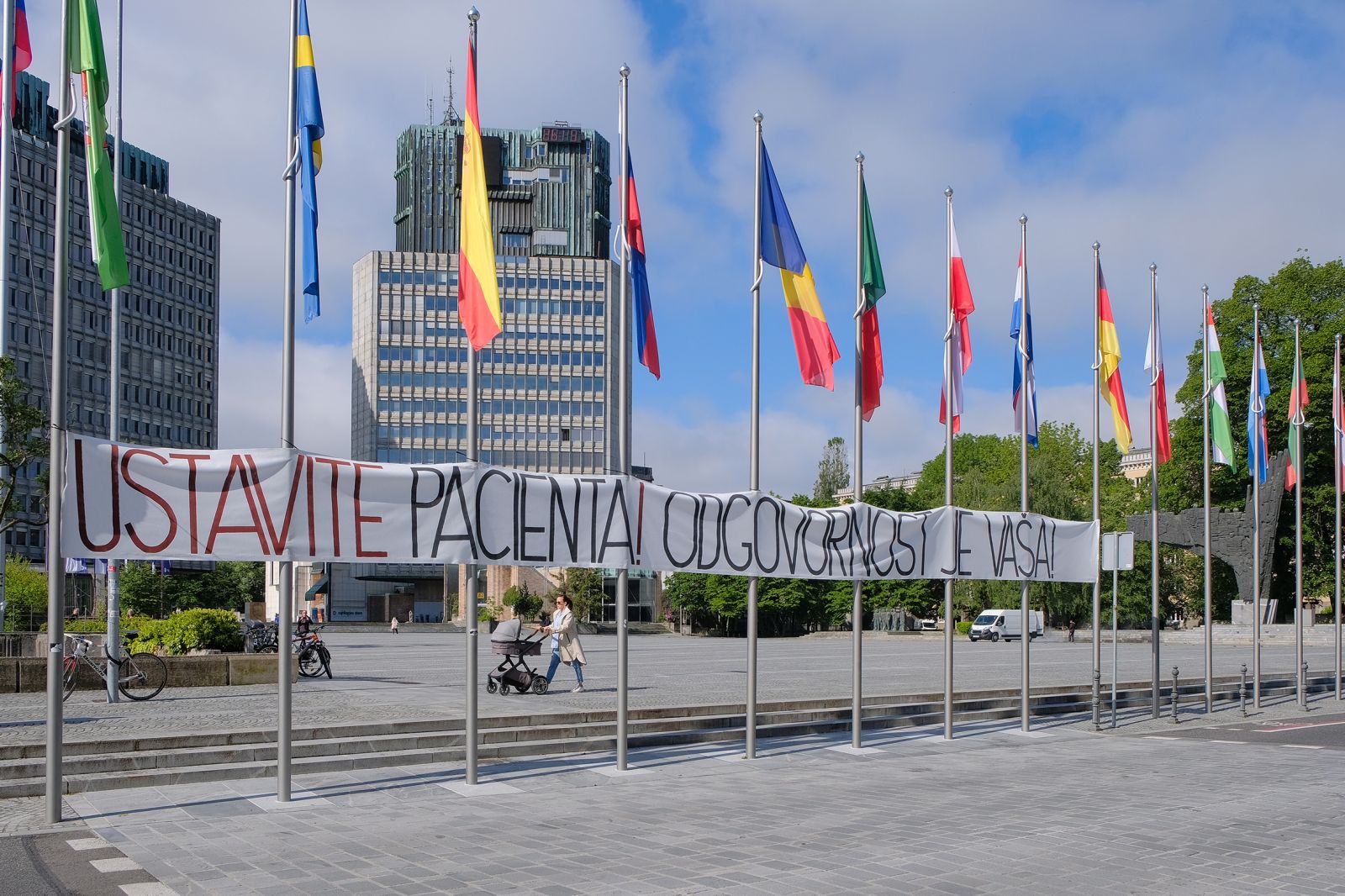 Transparent na Trgu republike pred parlamentom v Ljubljani, 26. maja 2021.