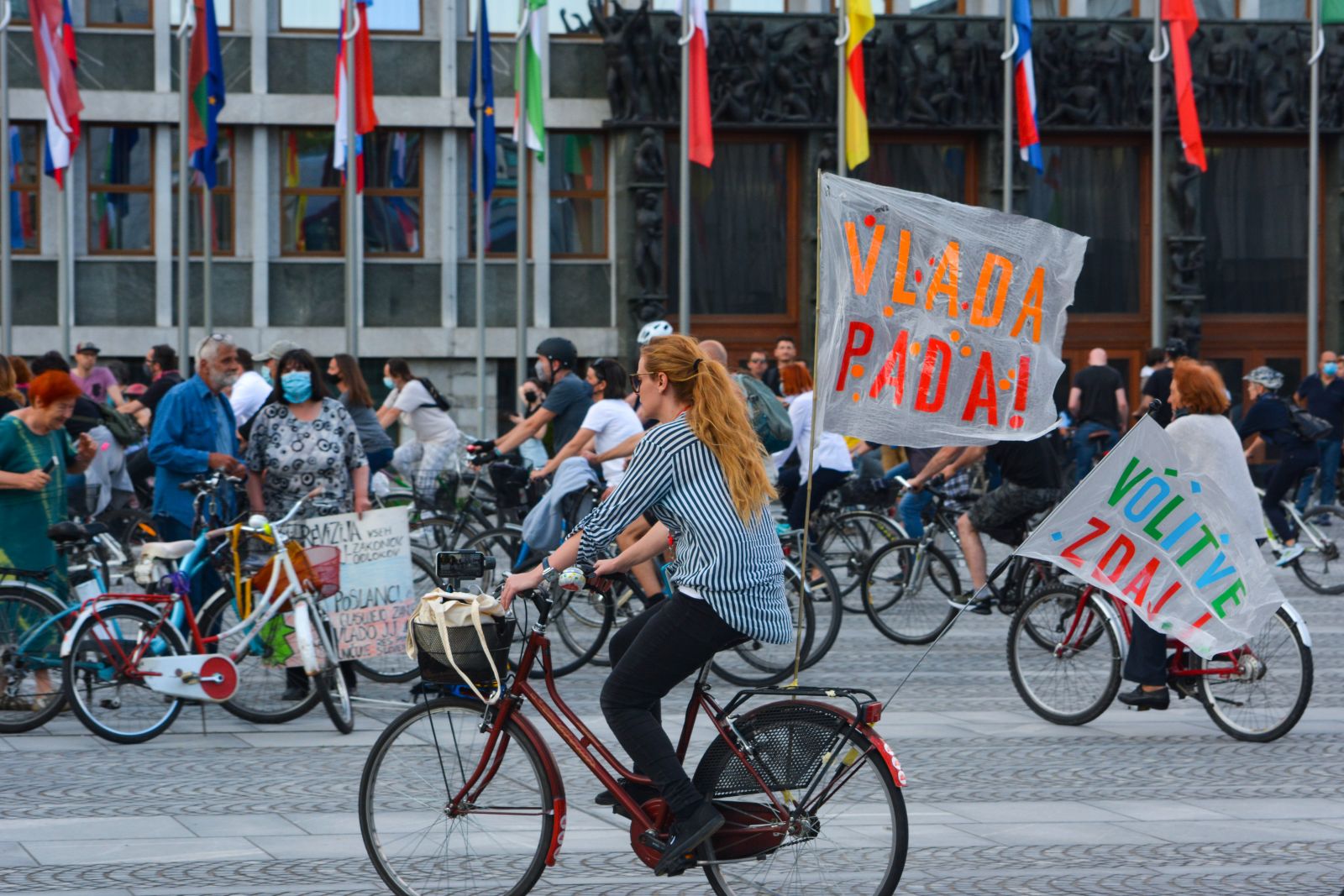 Protestniki na kolesih so se sicer nekaj časa zadržali na Trgu republike, nato pa so se odpravili proti hiši Evropske Unije, s prošnjo za njihovo pomoč, da preprečijo "uničevanje vladavine prava" v Sloveniji.