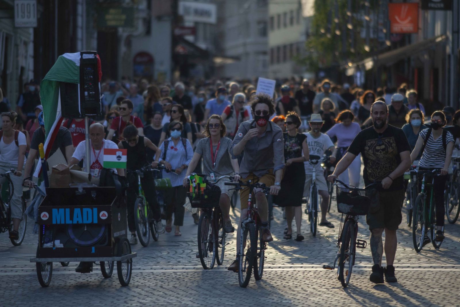 Petkovi kolesarji so včeraj protestirali proti madžarskim prevzemom slovenskih podjetij in orbanizaciji Slovenije. Poudarili so, da Slovenija vse bolj sledi orbanizaciji tudi v nazorskih usmeritvah, pri čemer se oddaljuje od trdno vzpostavljenih demokracij in se povezuje s t. i. Višegrajsko skupino.