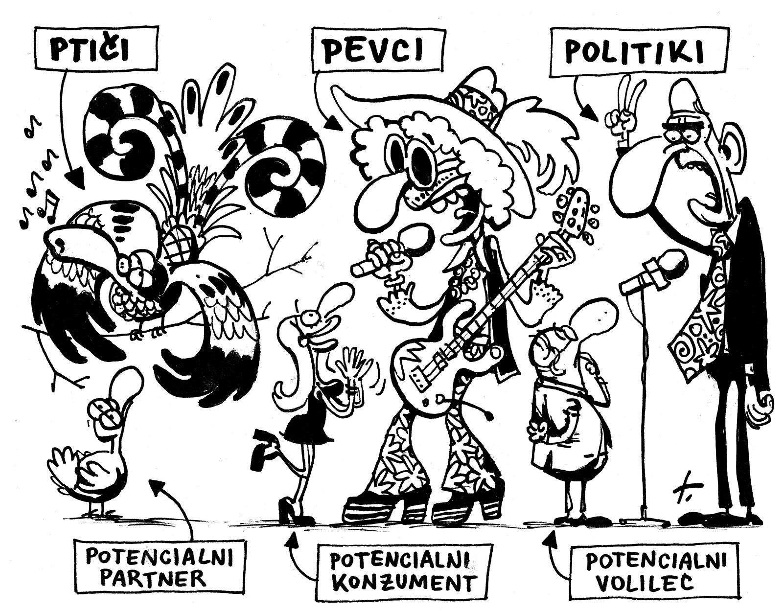 »Ptičji samci uporabljajo svoje petje in pogosto tudi pisano perje, da prepričajo samice, da so najboljši potencialni partnerji. Podobno so tudi pesniki in pevci skozi vso zgodovino ugajali ženskam in dekletom.«