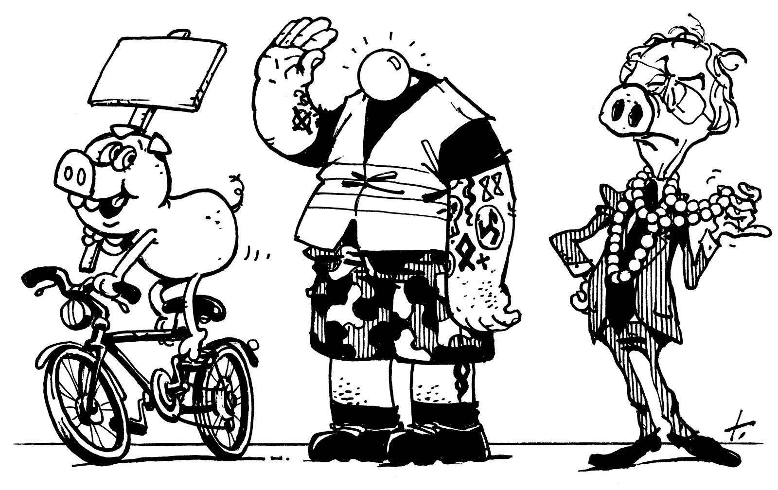 Minister Hojskač je pojasnil svojo nerodno izjavo – protestnike je pravzaprav le pohvalil, da so lepi in prijazni pujski, neonaciste pa zmerjal, da so navadni biseri. (on pa je nevtralen, torej svinja z biseri press)