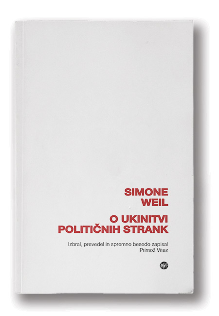Natanko to je pred mnogimi leti vzkliknila Simone Weil, francoska filozofinja, ena izmed prvih diplomantk na sloviti École Normale Supérieure, aktivistka, španska borka (pri anarhistih), tovarniška delavka, predana kristjanka ( judovskega rodu), mistična svetnica, ki je umrla leta 1943, pri štiriintridesetih – leta 1942 je emigrirala najprej v Ameriko in potem v Britanijo, tam pa se je med tuberkulozo menda iz solidarnosti do domovine, Francije, ki je trpela pod nacistično okupacijo, izstradala in umrla. V eseju O ukinitvi političnih strank, ki ga je napisala v Londonu malo pred smrtjo (in ki je v prevodu Primoža Viteza zdaj v knjižni, sanjavi obliki izšel tudi pri nas), je namreč poudarila: »Natančen in pozoren preudarek ne razkrije nobenega zadržka za vsesplošno ukinitev političnih strank.«
