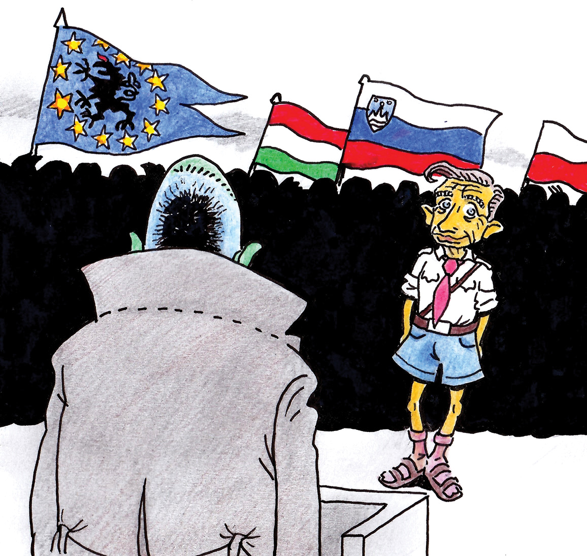 Poljska in Madžarska, občasno Slovaška in Češka, v zadnjih mesecih pa tudi Slovenija. Participirali bi pri priboljških iz evropske sklede, a hkrati zaobšli evropski pravni red in demokratične standarde. Zato se bo treba odločiti. Taki, kot trenutno smo, v EU ne sodimo. In če se nismo pripravljeni prilagoditi, pač odidimo. No, mora pa tudi sama združena Evropa razmisliti, do kod je mogoče tolerirati ignoriranje evropskega pravnega reda, demokratičnih standardov. Krivda za degenerativne procese v Sloveniji je vsekakor naša, a odgovornost je tudi evropska. Pred očmi vesoljne Evrope se koti nova stara paradigma. Nekakšna iliberalna demokracija. In če je vzdušje na Poljskem in na Madžarskem slabše, ker večinska javnost bolj ko ne podpira avtoritarni režim, pri nas za zdaj pač ne, imata nova fašistoidnost in fašizacija vsakdanjega življenja pri nas nevarnejše pojavne oblike. Sedanji Janšev režim neposredno koketira z neonacizmom. Funkcionarji stranke SDS in sploh ves Janšev »gefolgschaft« je poln prstnih odtisov sodobnega neonacizma. To pač ni šala, če denimo, kot je ilustriral Erik Valenčič v prejšnji Mladini, Janšev režim reaktivira in postavi na mesto generalnega direktorja policije človeka, ki je kot upokojeni policaj na Twitterju sledil skupinam neonacističnih rumenih jopičev; človeka, ki v svojem besednjaku uporablja terminologijo iz arzenala (neo)nacizma. Ne vem, kaj dela predstavništvo evropske komisije v Sloveniji, kam gledajo, kaj spremljajo v deželi gostiteljici nemški, francoski in drugi diplomati? Naj se vprašajo, kako bi bilo videti, če bi bil njihov šef policije »na ti« z neonacističnimi formacijami? In predvsem naj se ne sprenevedajo: nedemokratične, celo fašistoidne prakse v Sloveniji so prav tako odraz, eden od obrazov združene Evrope, vse dokler nismo kategorično problematizirani in sankcionirani ...