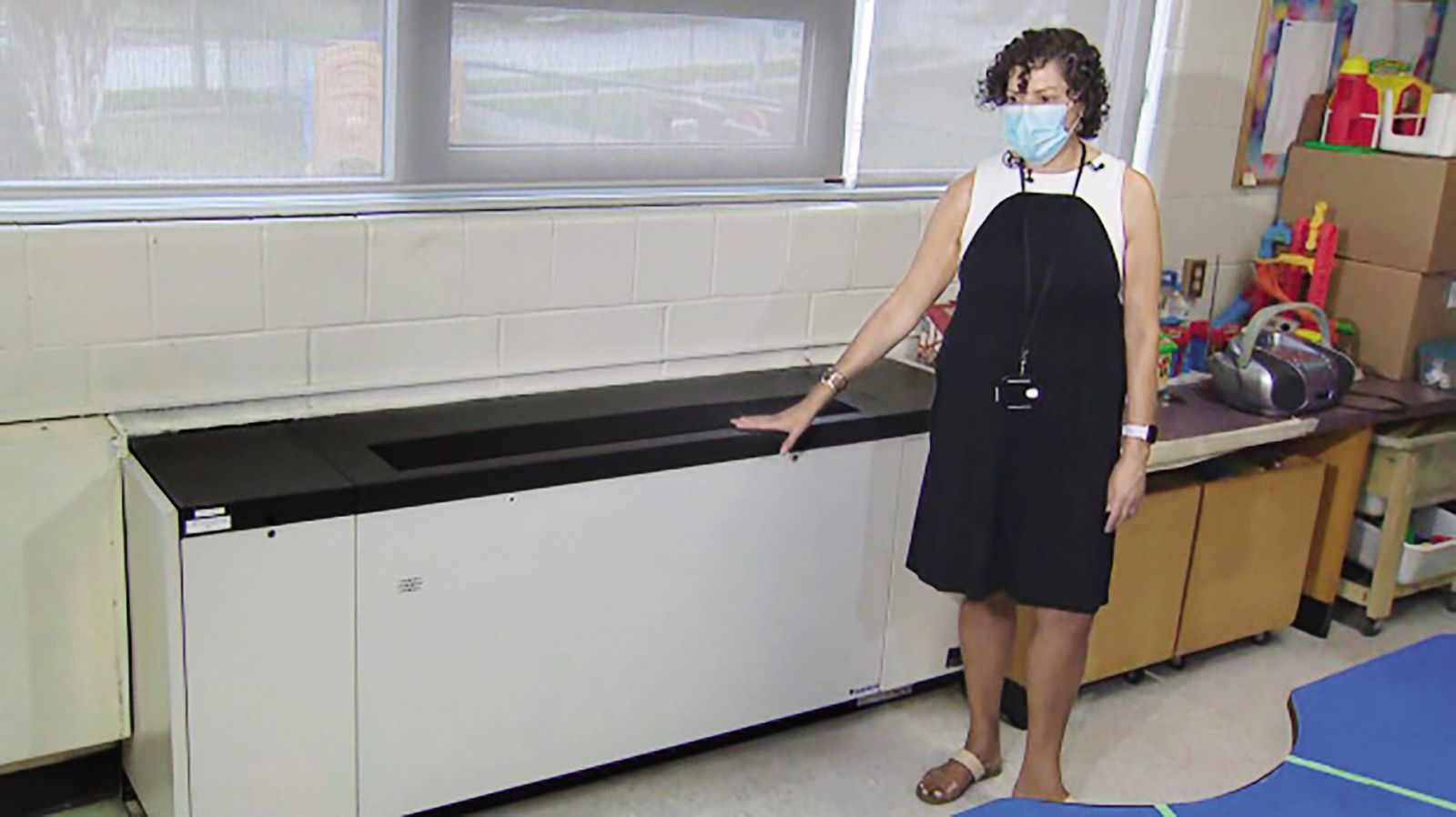 Na sliki so prezračevalne naprave in naprave za čiščenje zraka, ki so jih pred začetkom šolskega leta s sredstvi iz mestnega proračuna v šolah vgradili v Torontu v kanadski provinci Ontario. Slovenska vlada za zdaj nima v načrtu tovrstnih naložb, čeprav se pouk začne čez dva tedna.