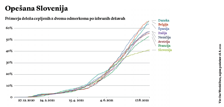 Osem mesecev po prihodu prvih odmerkov cepiva v državo je Slovenija na področju cepljenja ena od evropskih poraženk: vladi ni uspelo prepričati ljudi, naj se cepijo, polno cepljenih je 40 odstotkov prebivalstva, vse – sicer zelo slabe – kampanje vlade pa so brez resnih učinkov na prebivalstvo. Ne samo to, javnost je trpko razdeljena, sprte so družine, prijatelji, vlada pa se na svoj poraz pri prepričevanju prebivalstva, naj se cepi, odziva gnevno, besno in žaljivo. Zdaj namerava tiste, ki se ne želijo cepiti, kaznovati z zapovedanim plačevanjem testov, ki bodo hkrati obvezni. Za teste smo doslej porabili 60 milijonov evrov, več ne nameravamo, sporočajo iz vlade. Pri čemer je ta podatek zavajajoč in neresničen: Slovenija je namreč za testiranje tako kot vse druge države prejela denar Evropske unije in testiranja torej ne financira neposredno sama. Skupni znesek evropskih sredstev za izvajanje testiranja znaša 150 milijonov evrov.