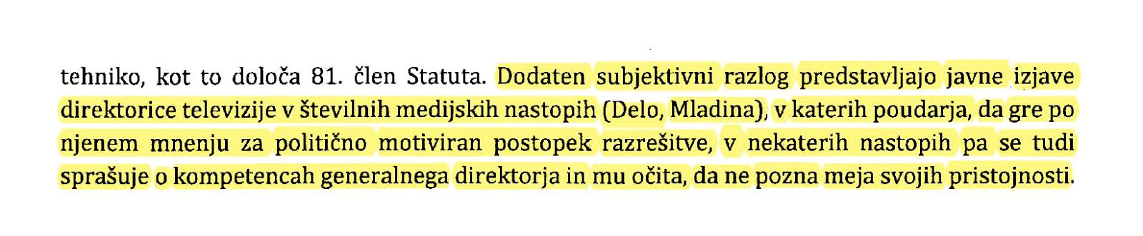 Generalni direktor RTV Slovenija Andrej Grah Whatmough je lastnoročno razrešil uporno direktorico televizije Natalijo Gorščak. Poleg ostalega ji je v razrešnici očital tudi to, da je javno govorila o tem, kaj se dogaja na televiziji. Očital ji je intervju v Mladini in Delu