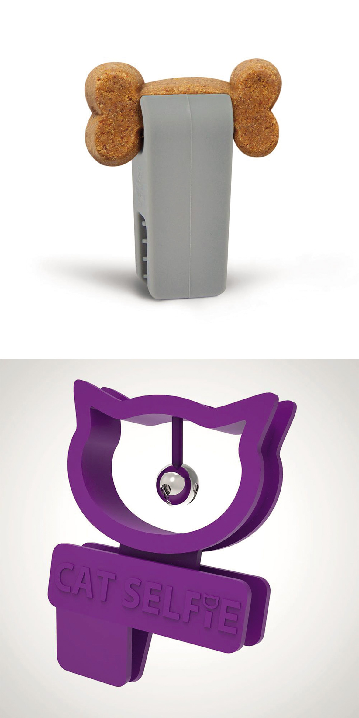 Psom in mačkam dober selfi ne pomeni toliko kot njihovim lastnikom, zato je treba za sodelovanje živali pri fotografiranju uporabiti posebne trike. Priboljški so zadeva, ki vedno vžge, vsaj pri psih. Ker je težko v eni roki hkrati držati telefon in še nekaj, kar bi pritegnilo pozornost kosmatinca, so si izmislili pripomočke. Eden od njih je woofie, silikonski dodatek za pametni telefon, v katerega zataknemo pasji priboljšek. Pozornost mačk, ki veljajo za bolj samovoljna in nestanovitna bitja od psov, pa je očitno lažje kot s hrano pritegniti z zvončkom, ki visi na plastičnem okvirju v obliki mačje glave. Tudi ta nastavek, prozaično imenovan cat selfie helper, torej pripomoček za delanje mačjih selfijev, nataknemo na vrh telefona, nato pa ga zatresemo, da zazvoni. Za pse, ki so nori na žogice, je na voljo nastavek pasji selfi, izvorno pooch selfie, v katerega vtaknemo teniško žogico, ki zapiska, ko jo stisnemo. Štirinožci so tako, ko opravijo s poziranjem, nagrajeni s prigrizkom ali igro, njihovi »gospodarji« pa s kjut fotkami, s katerimi bodo oblikovali svojo idealno podobo na družbenih omrežjih.